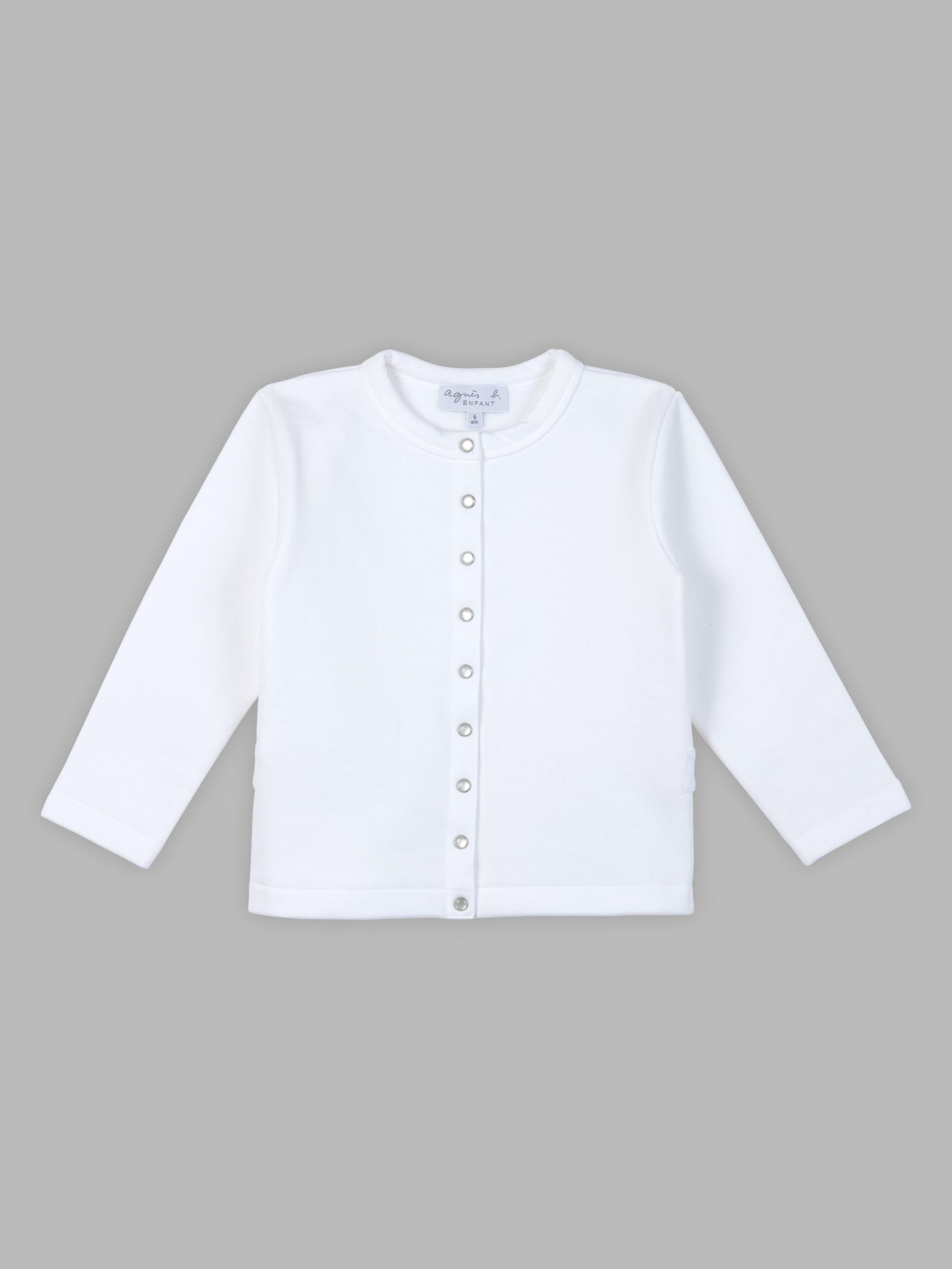 This “12 ans” snap cardigan for children is made from super-soft cotton fleece with mother-of-pearl snap buttons. It is made in France