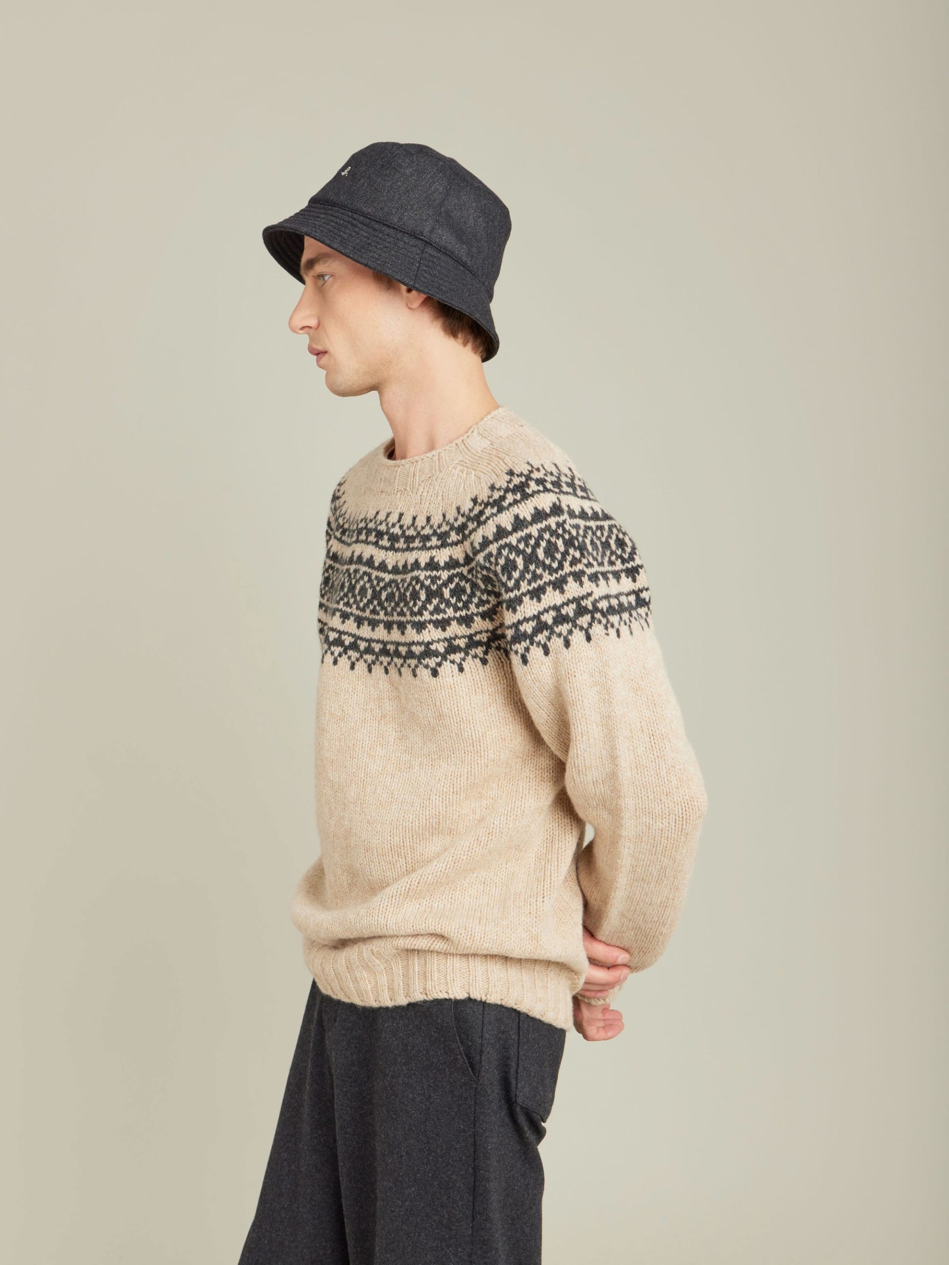 Scotland wool jacquard sweater.