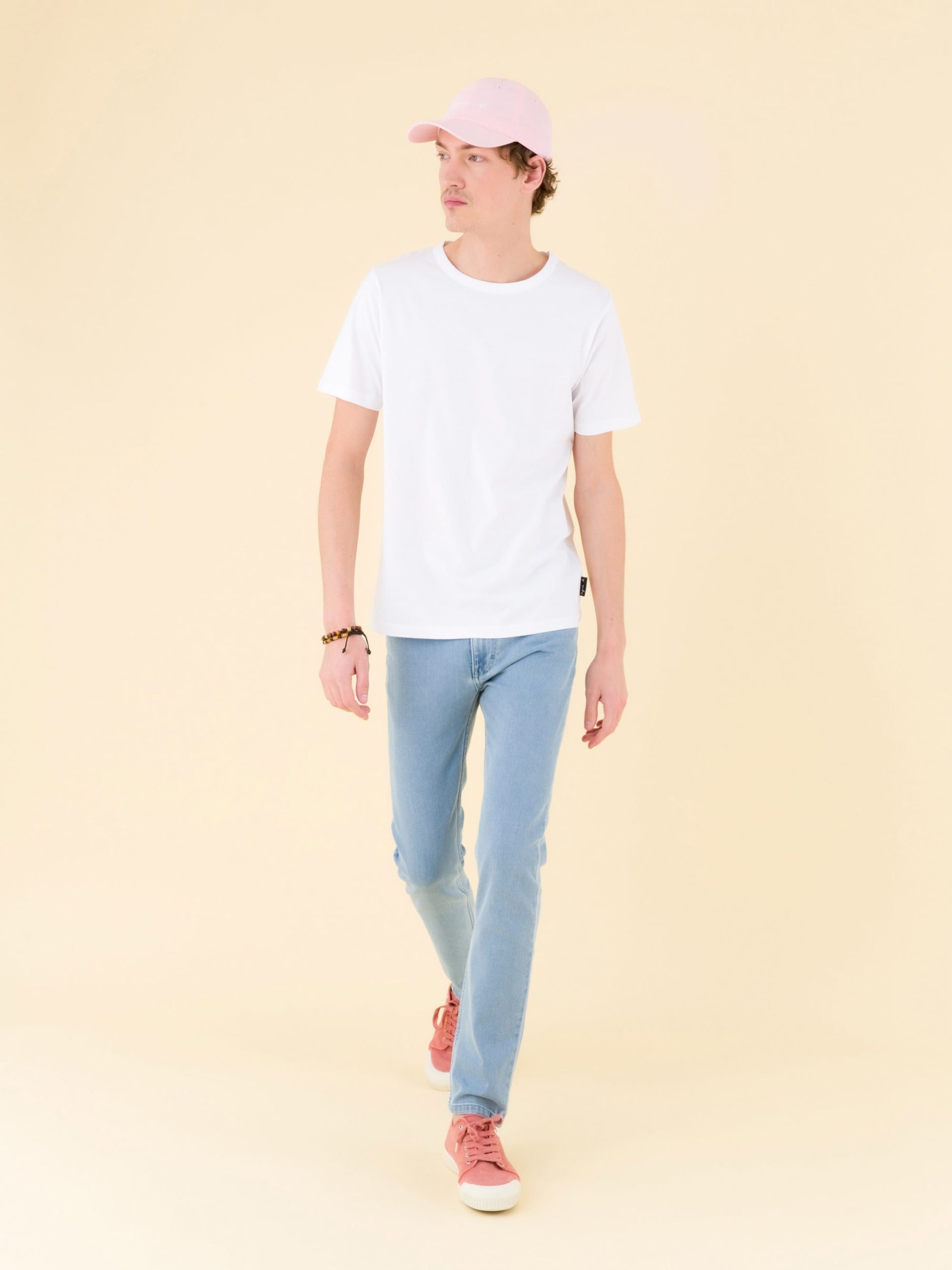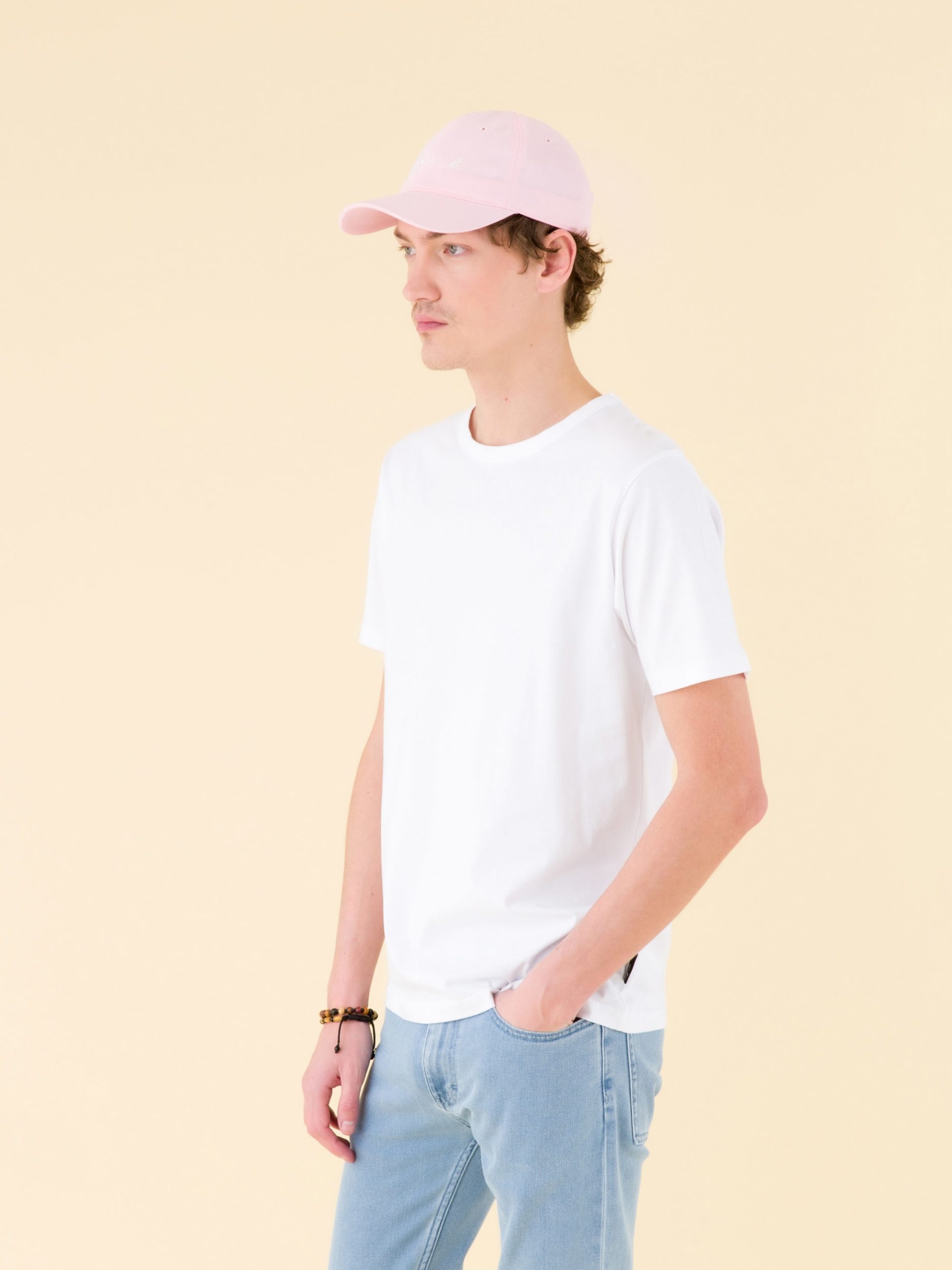 – Rounded neckline set off by a stitched bias- Short sleeves- Double-stitched finish