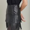 Agnesb Women’s Black Leather Frange Skirt | Noir