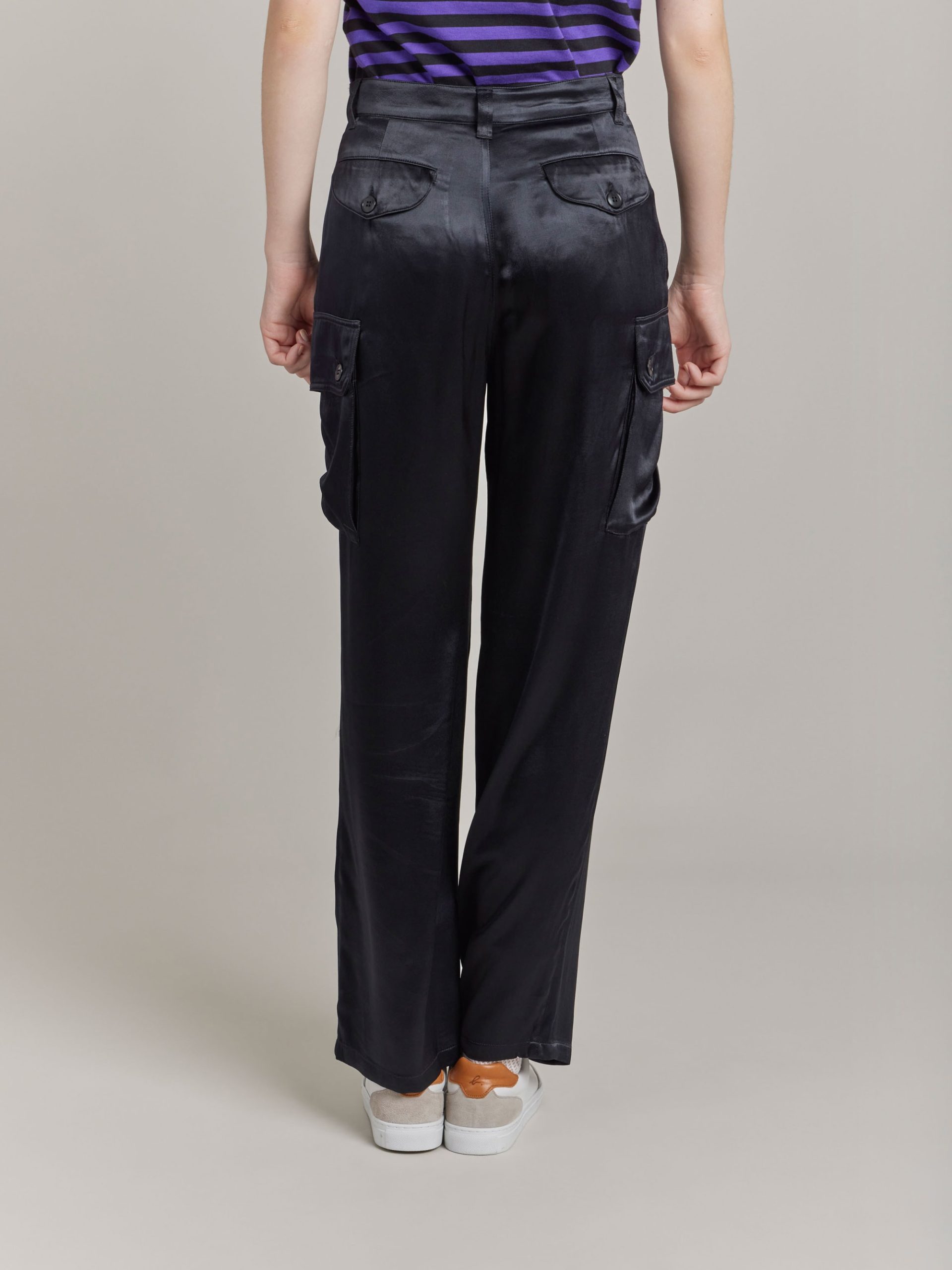 Agnesb Women’s Black Satin Cargo Pants | Noir