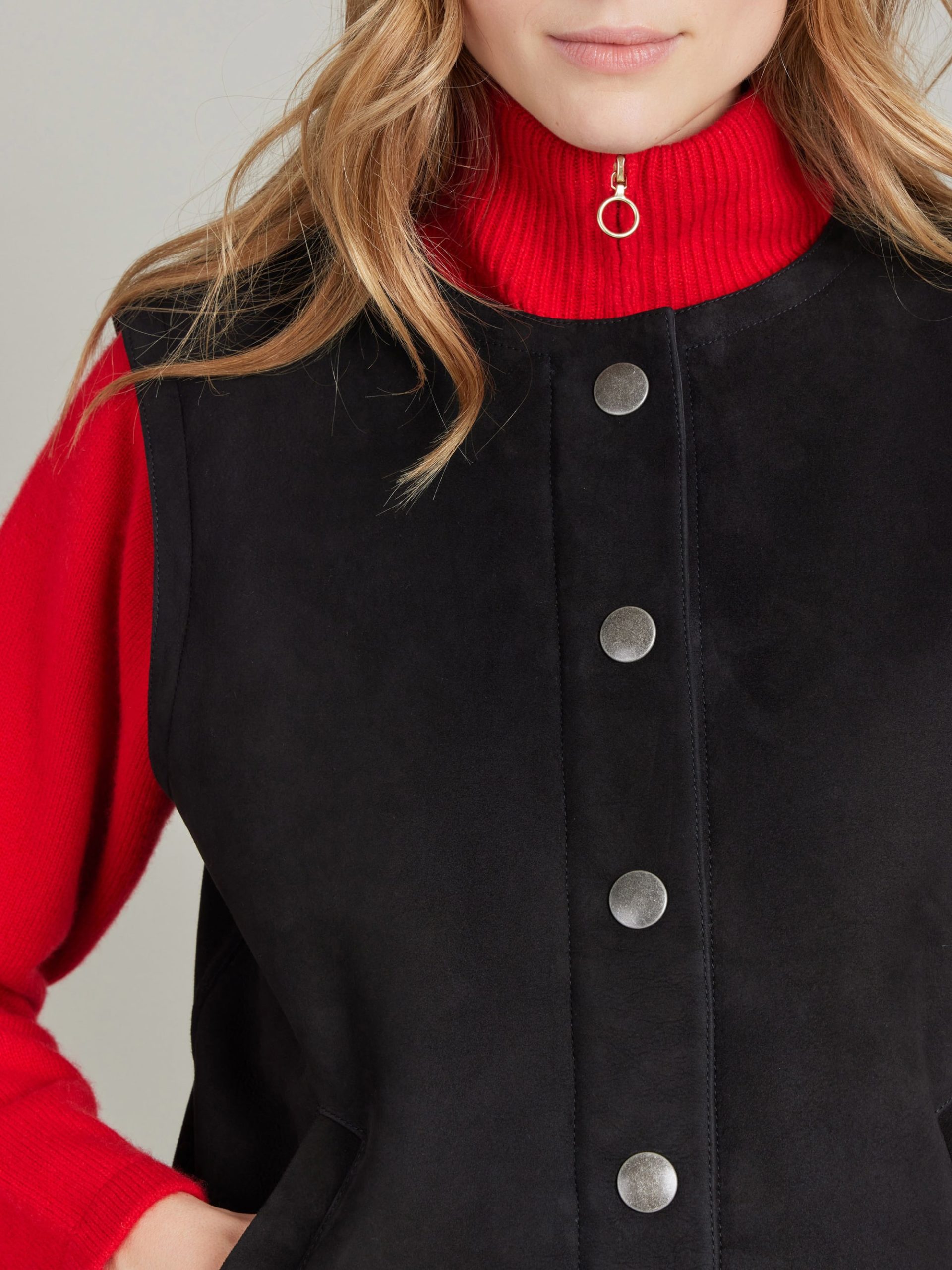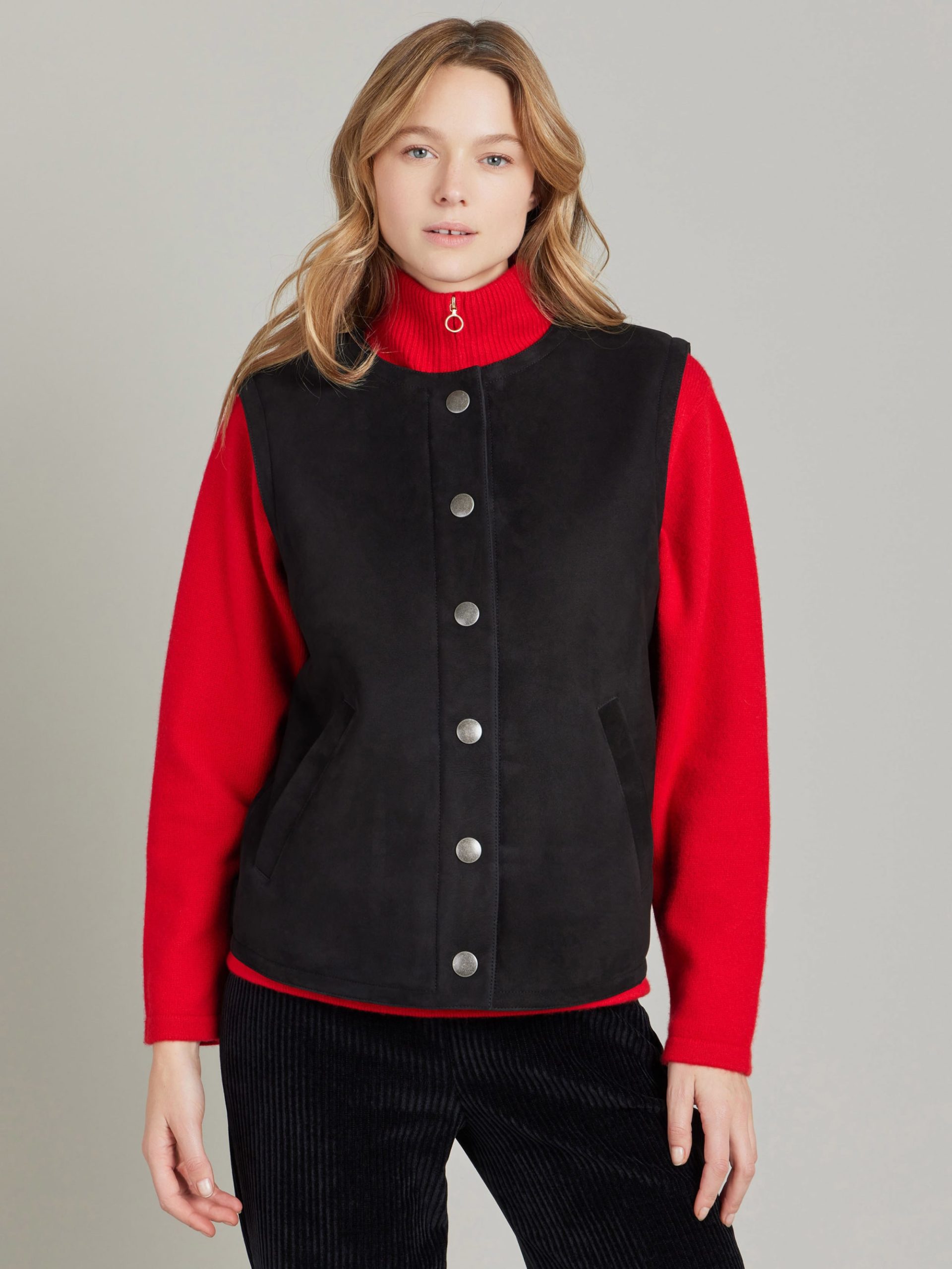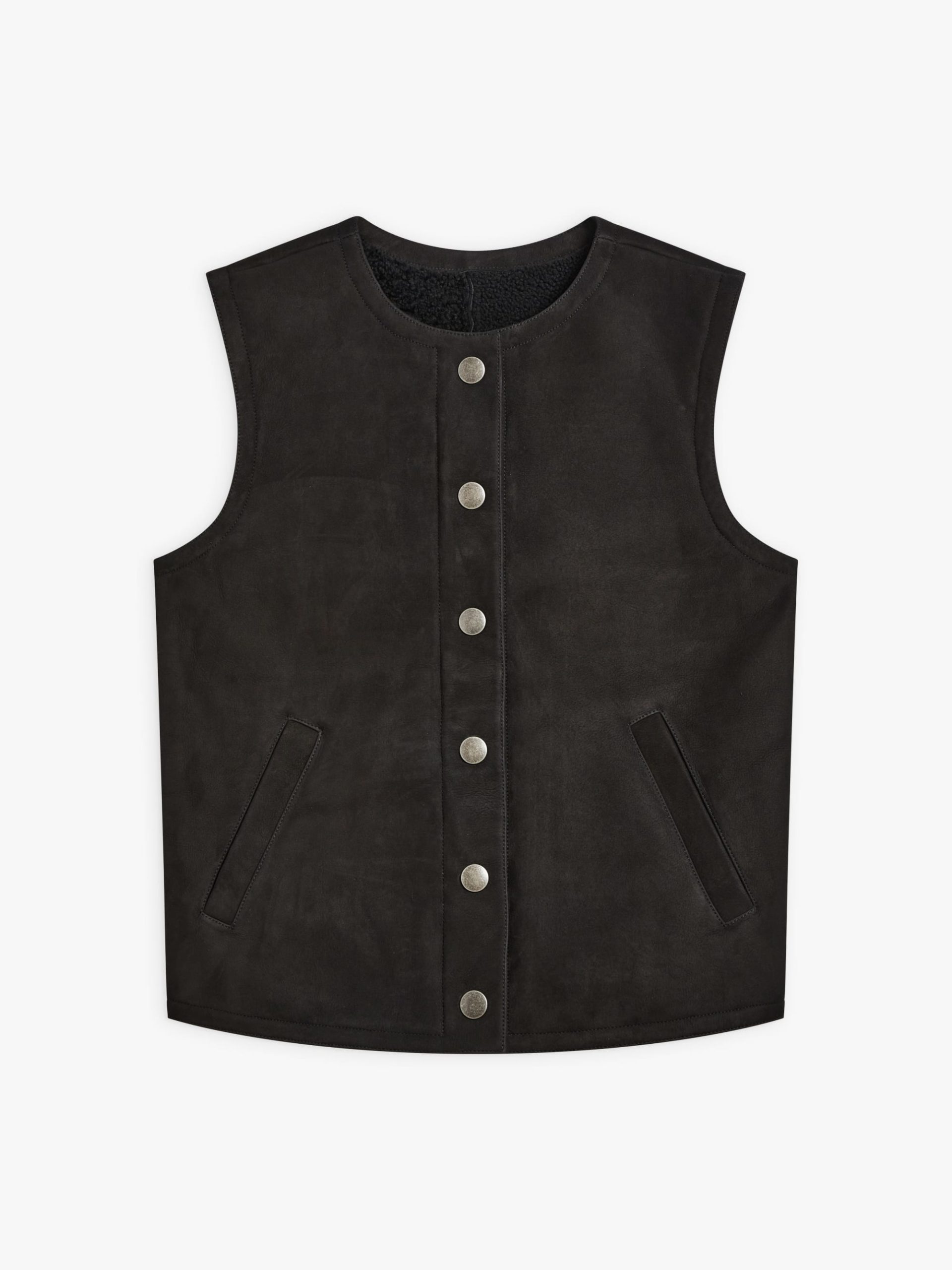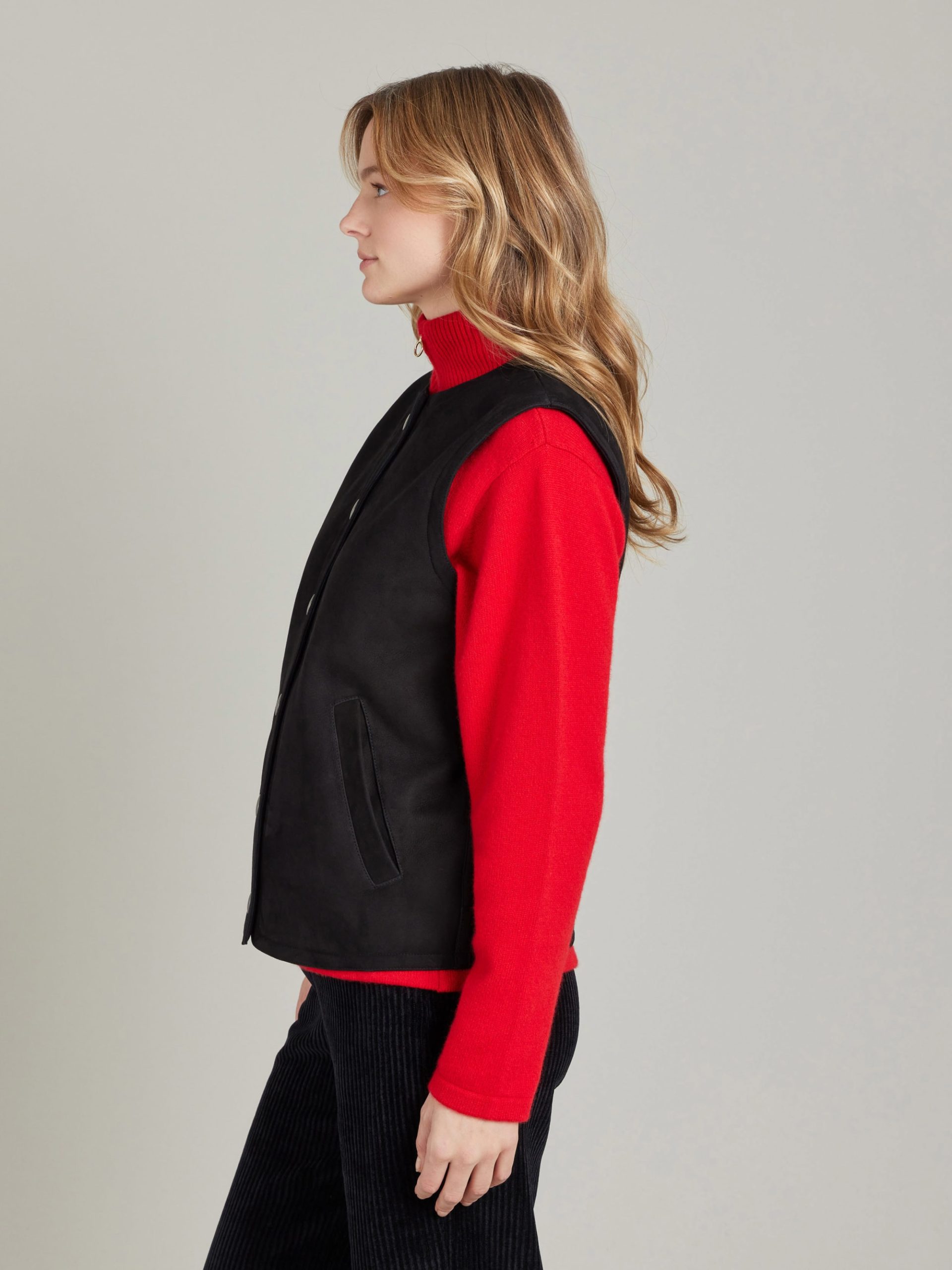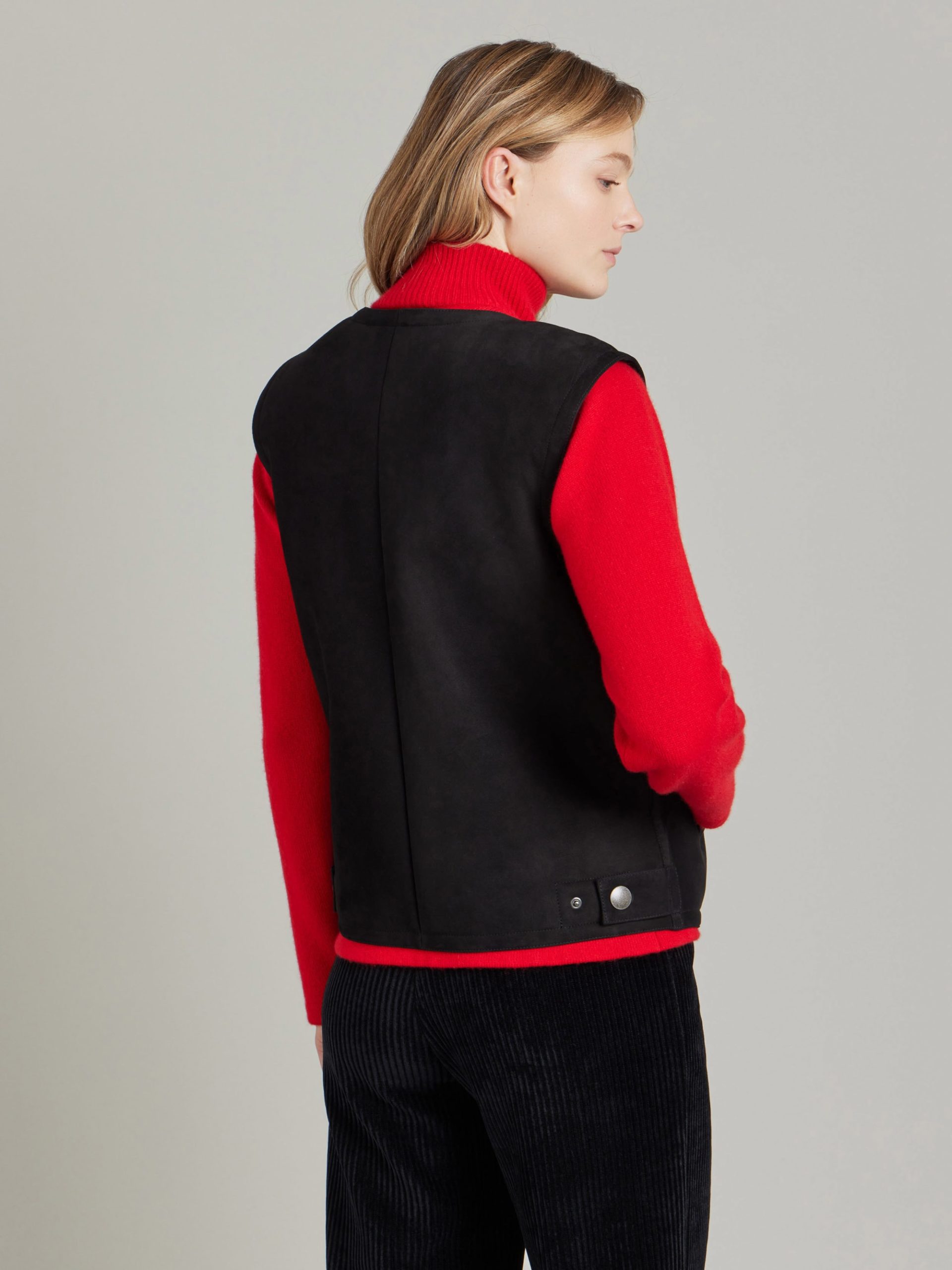 Agnesb Women’s Black Shearling Leather Vest | Noir