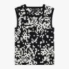 The Pixel sleeveless sweater features a bold black-and-white pixel motif in jacquard, a signature of agnès b. Its square neckline and graphic pattern create a unique, standout look.