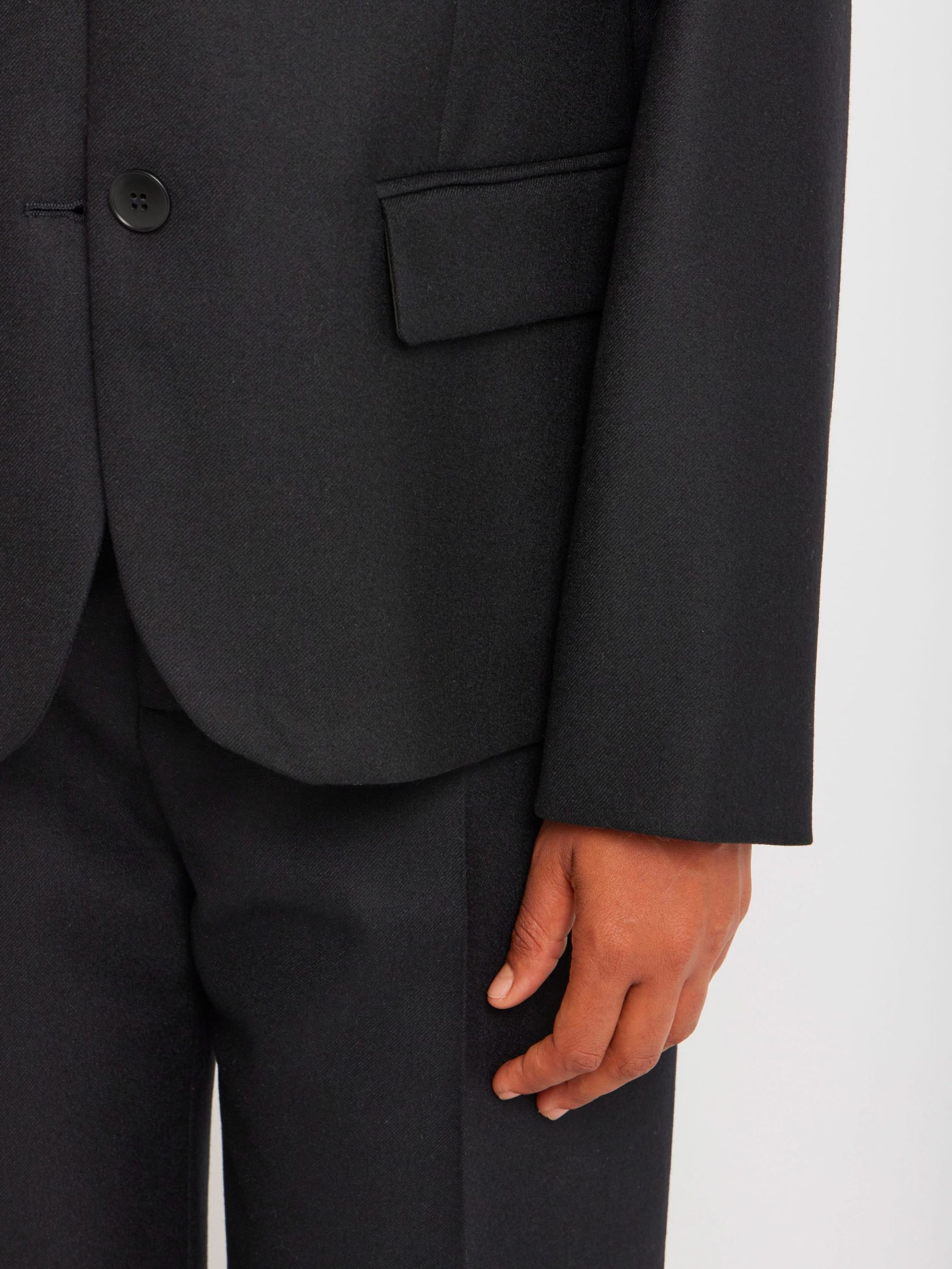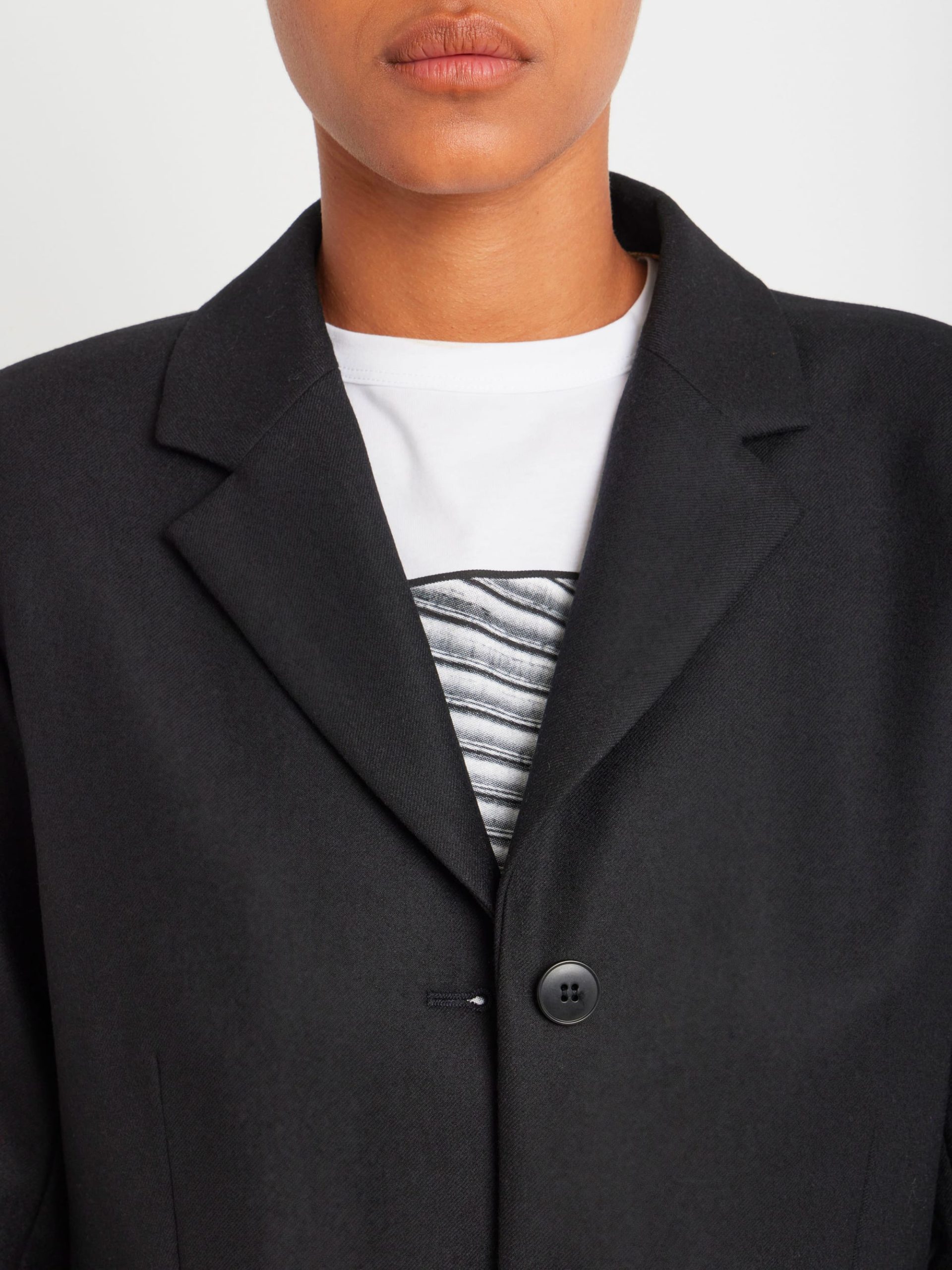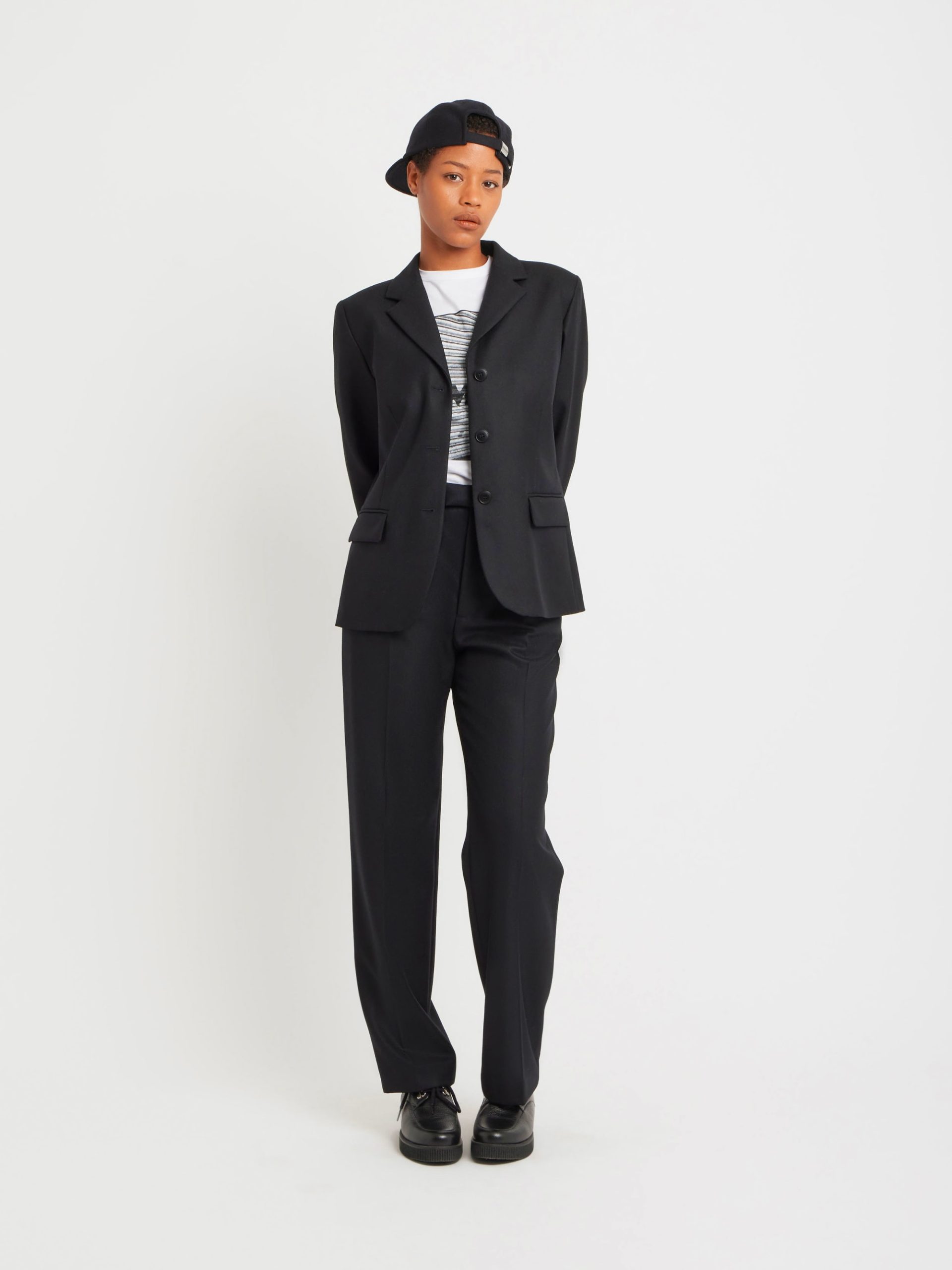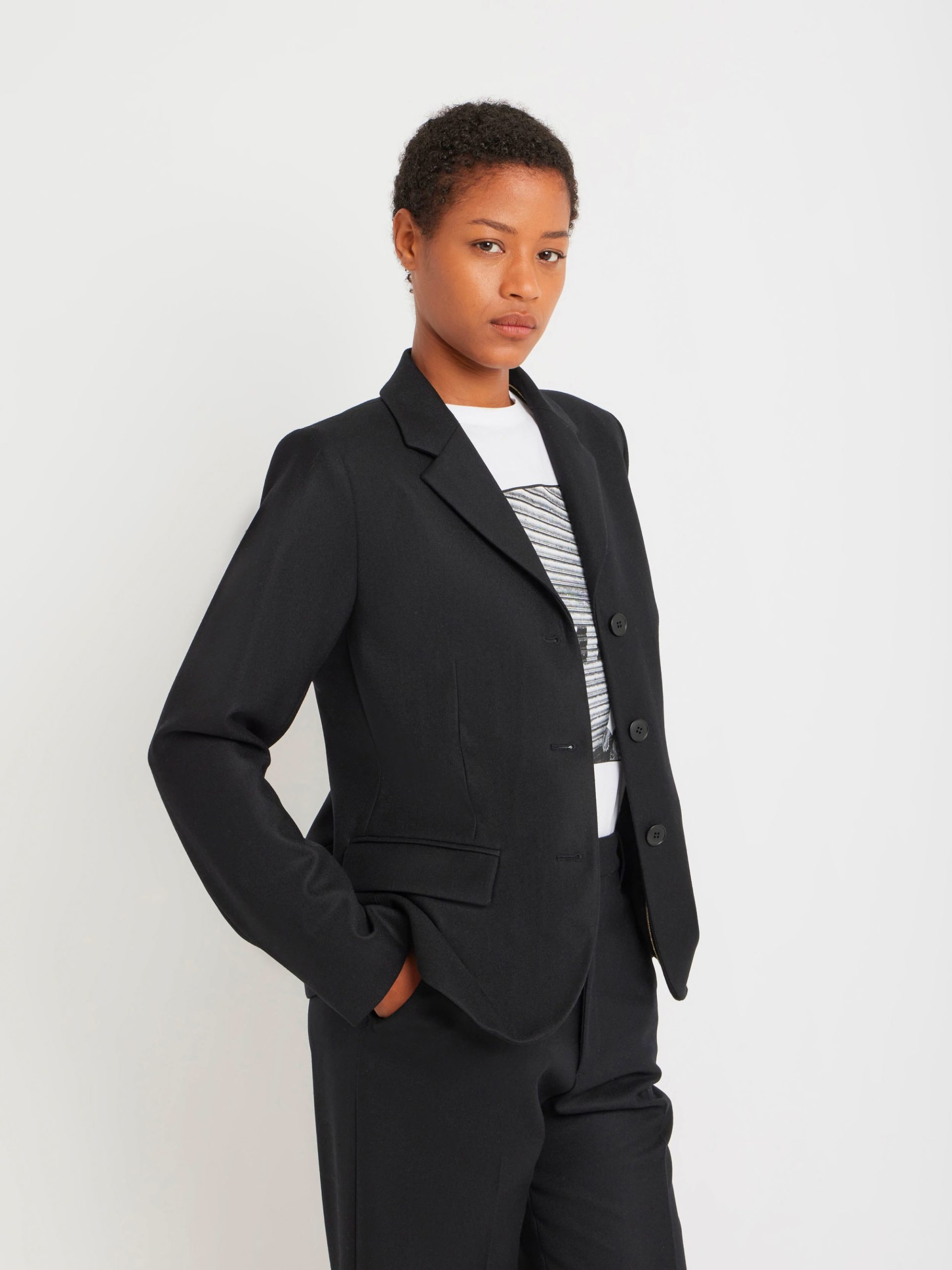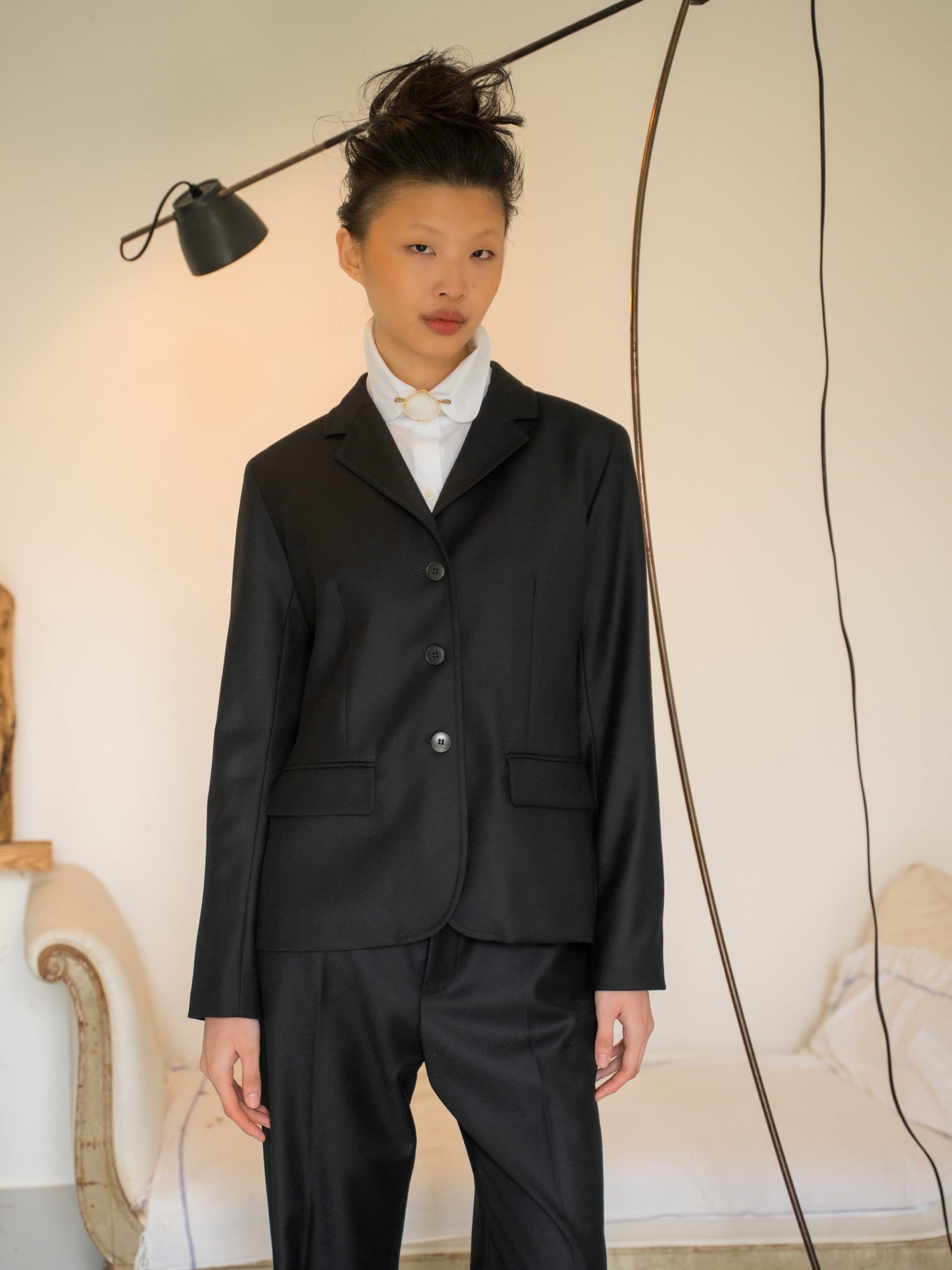 Louisa lined wool gabardine jacket. Discover the softness and quality of 100% Peruvian wool, sourced from ethical and controlled production. This exceptional material offers natural warmth and a beautiful drape. This season, Agnès is using it to transform workwear into casual chic pieces, combining comfort and elegance.