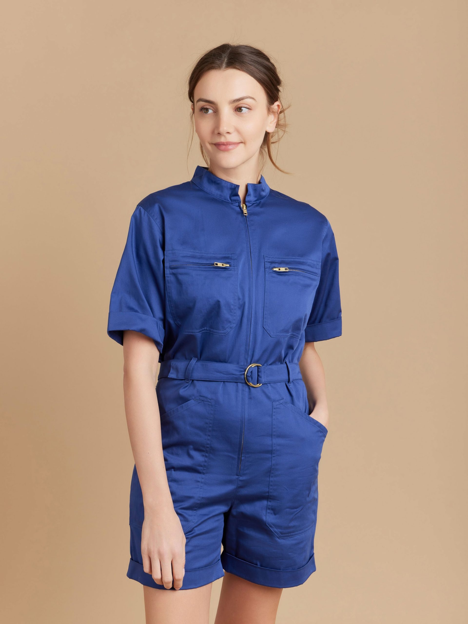 Agnesb Women’s Blue Cotton Satin Short Jumpsuit | Royal