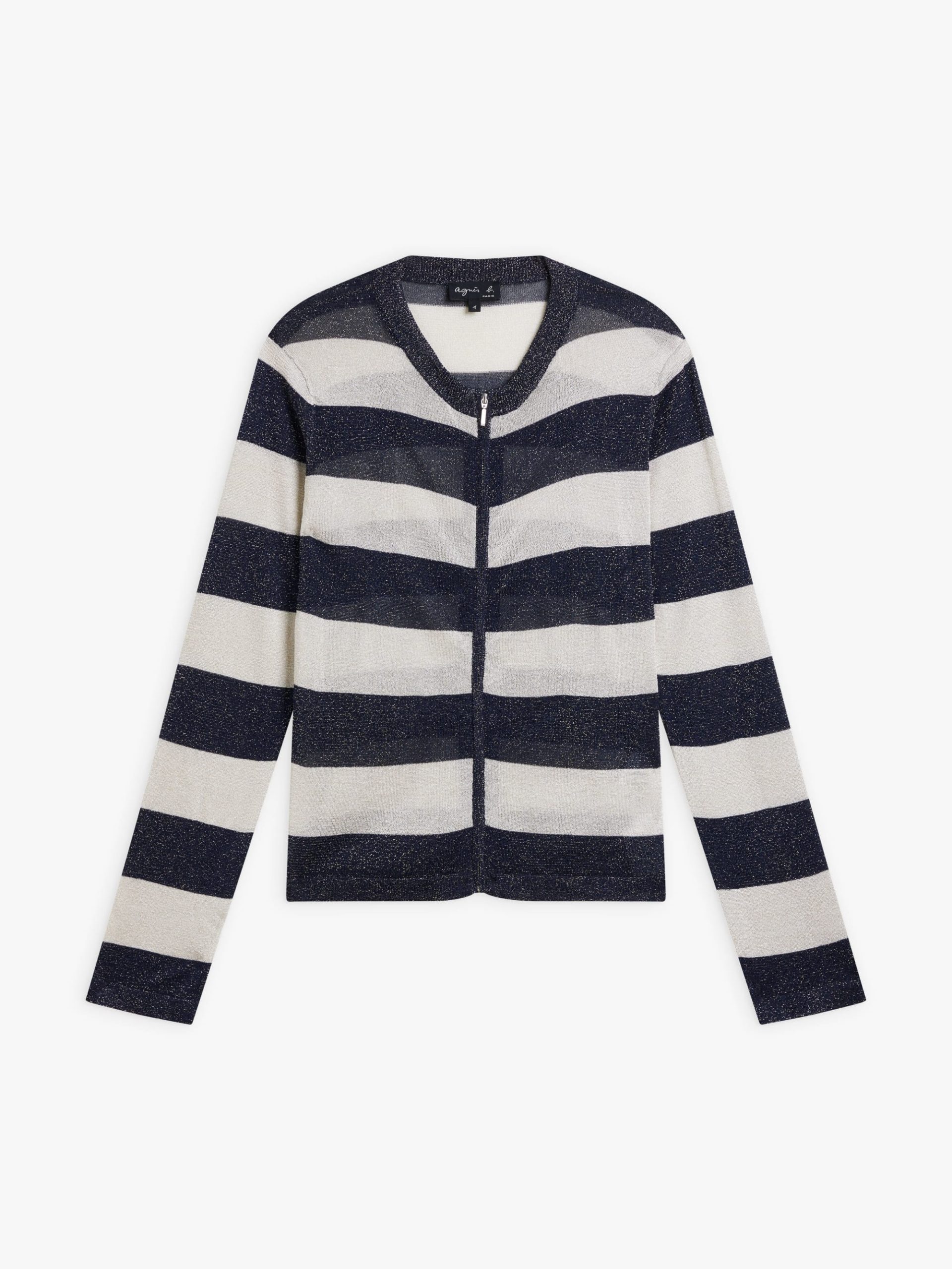 The Felin striped zip cardigan redefines the classic striped look. It brings a modern edge to a timeless design. Crafted from soft jersey viscose, it combines luxurious comfort with everyday sophistication, making it a versatile addition to your wardrobe.