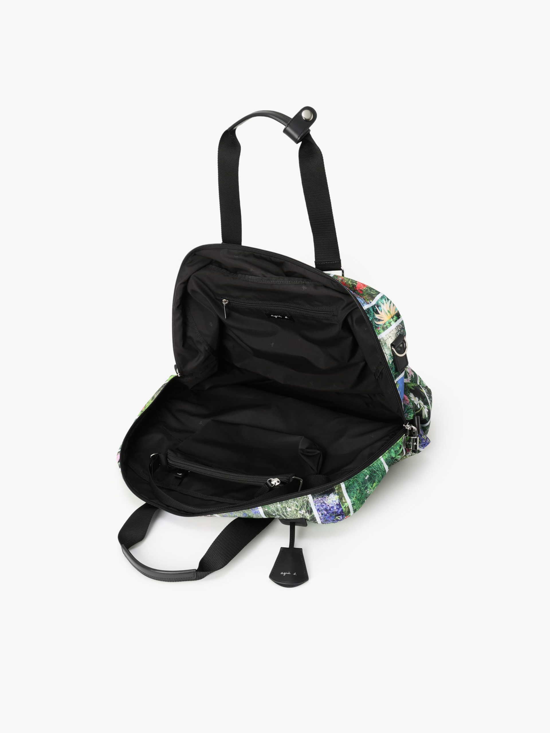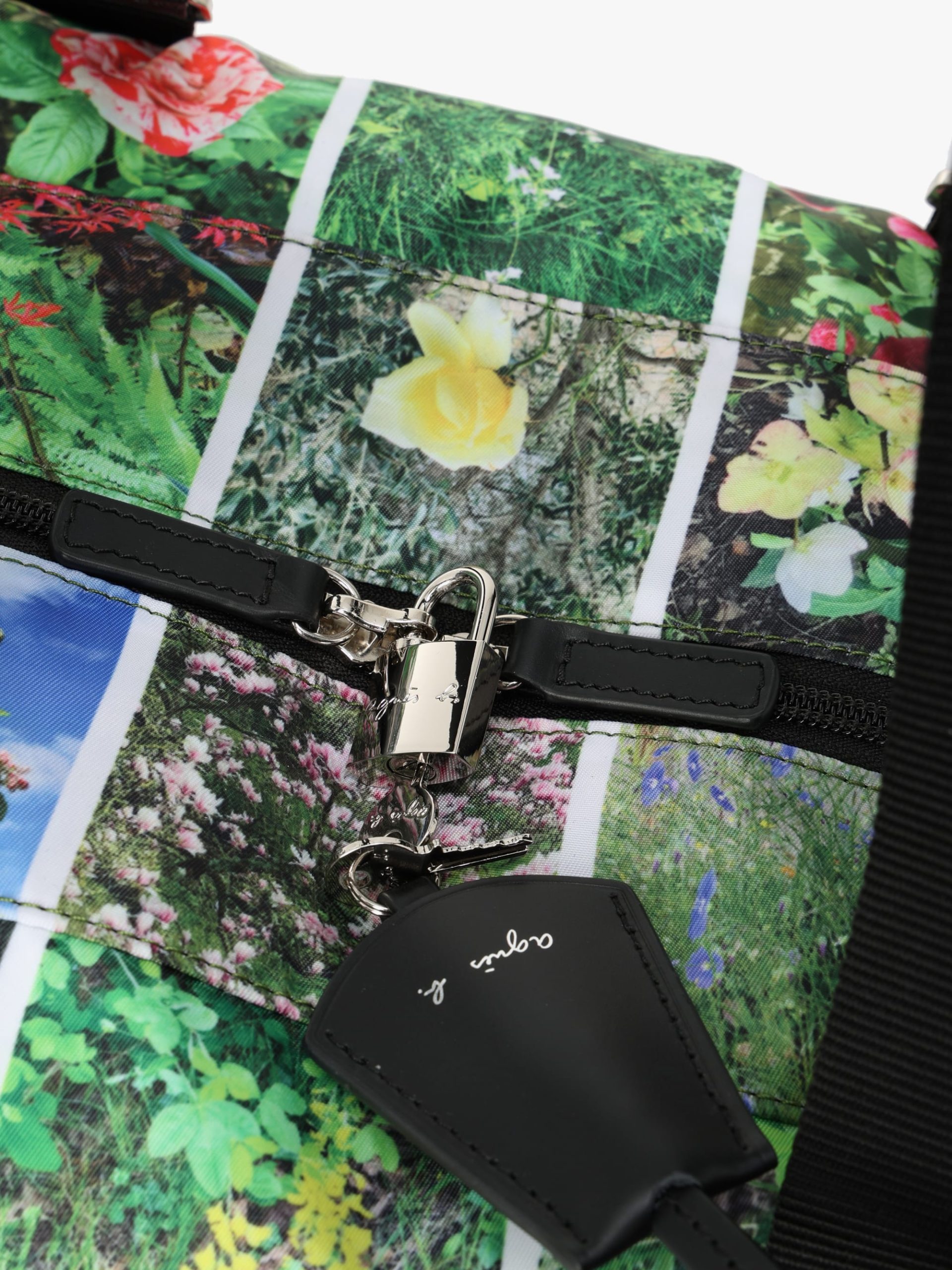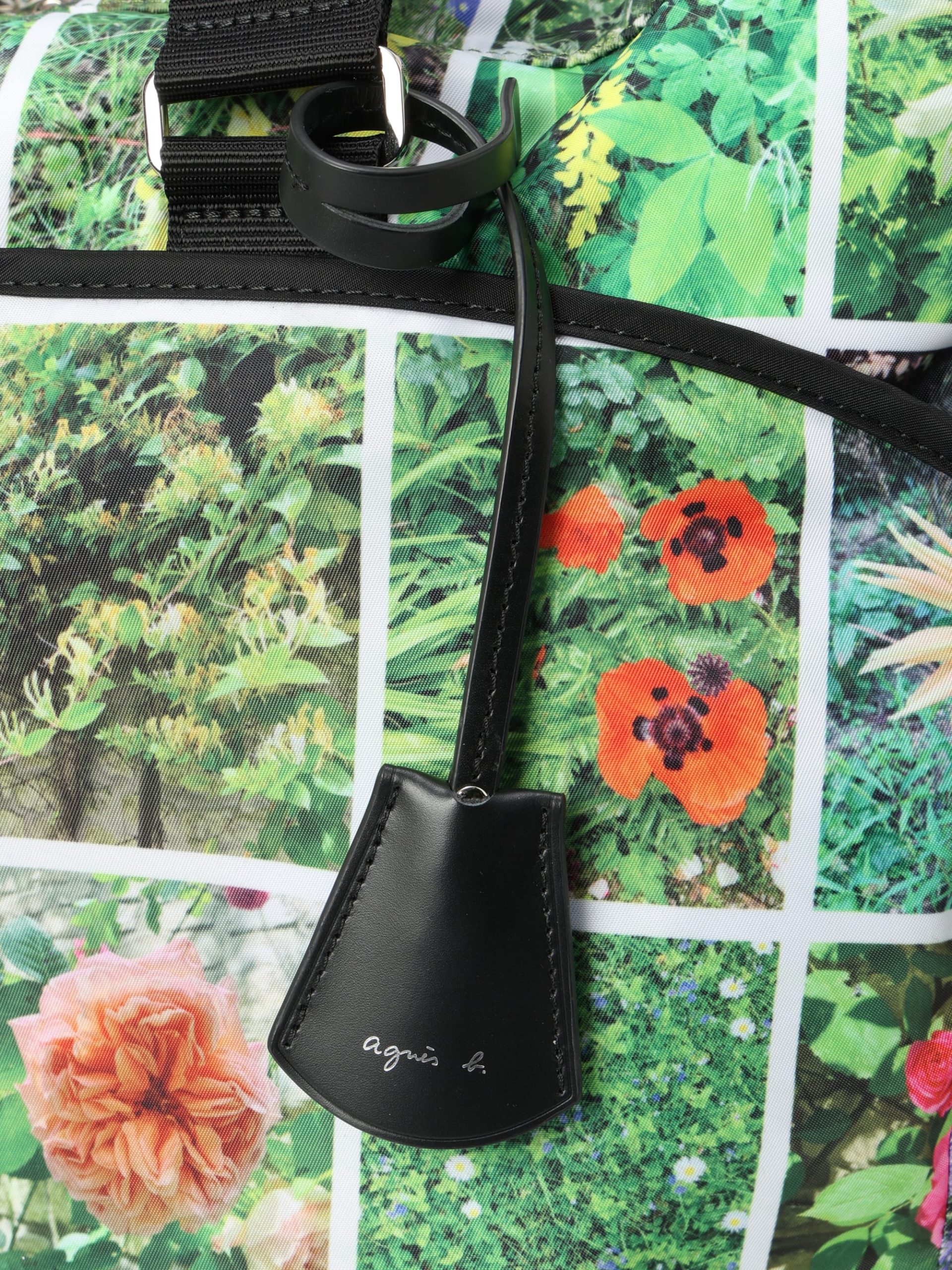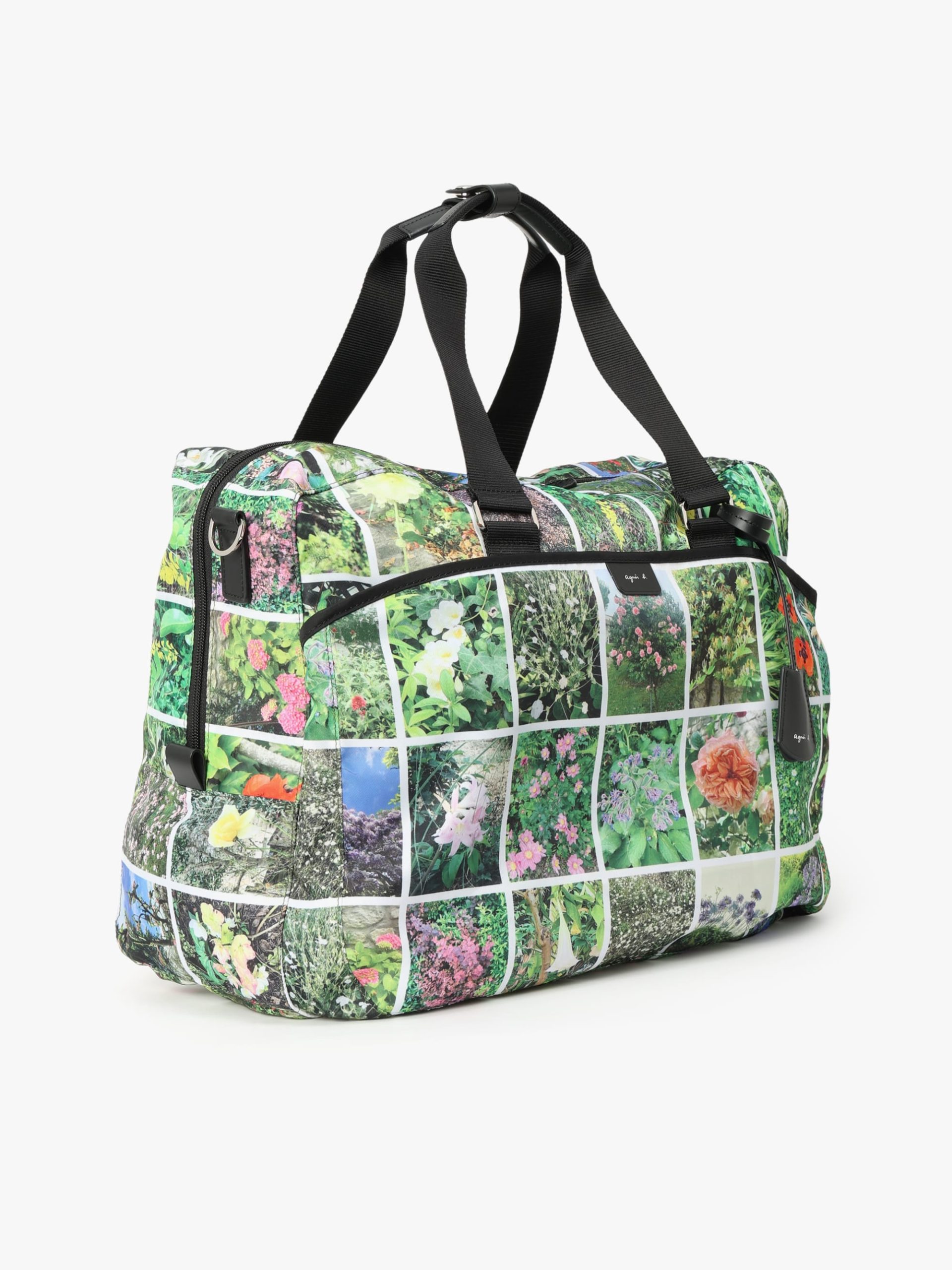 This Boston bag features the Instagram fleurs digital print—a vibrant collage of blooms captured by agnès b. herself in the gardens of Louveciennes and during her spring and summer travels.