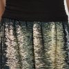 This striking skirt showcases a mesmerizing digital print, “La Mer la Nuit” a captivating nighttime water reflection photograph taken by agnès b. These “photo print clothes” have been a signature of agnès b. for years.