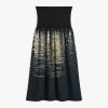 – Straight silhouette- Knee-length- Soft ribbed waistband for a comfortable fit- Elegant digital print inspired by the sea at night