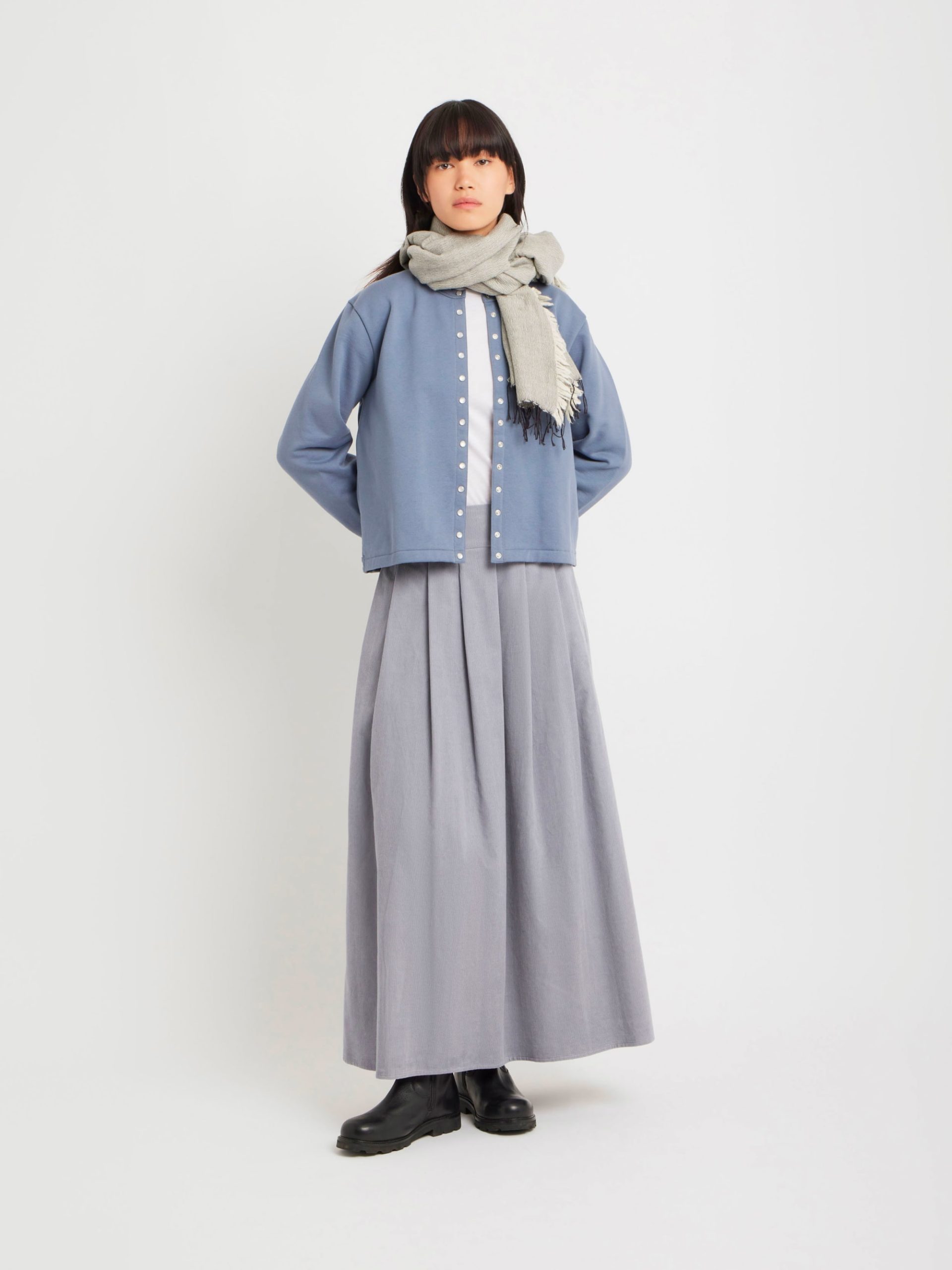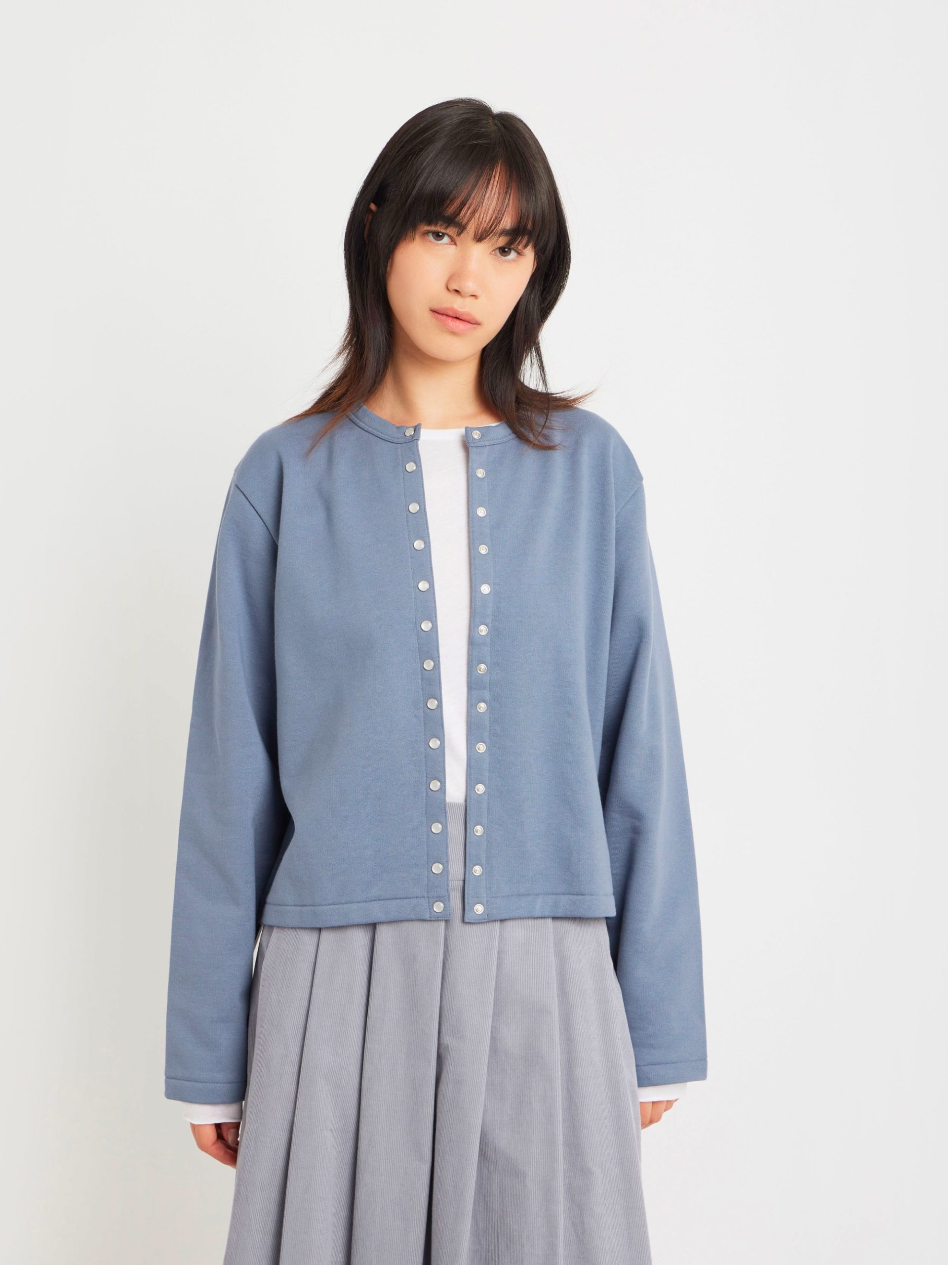 The snap cardigan was created by agnès b. in 1979. It was an immediate success and agnès b. continues to develop it each year.