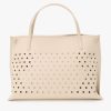 Perforated cow leather handbag.