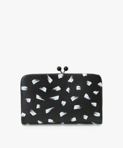 Agnesb Women’s Women’s Black And White Cow Leather Purse With Clip Clasp | Noir