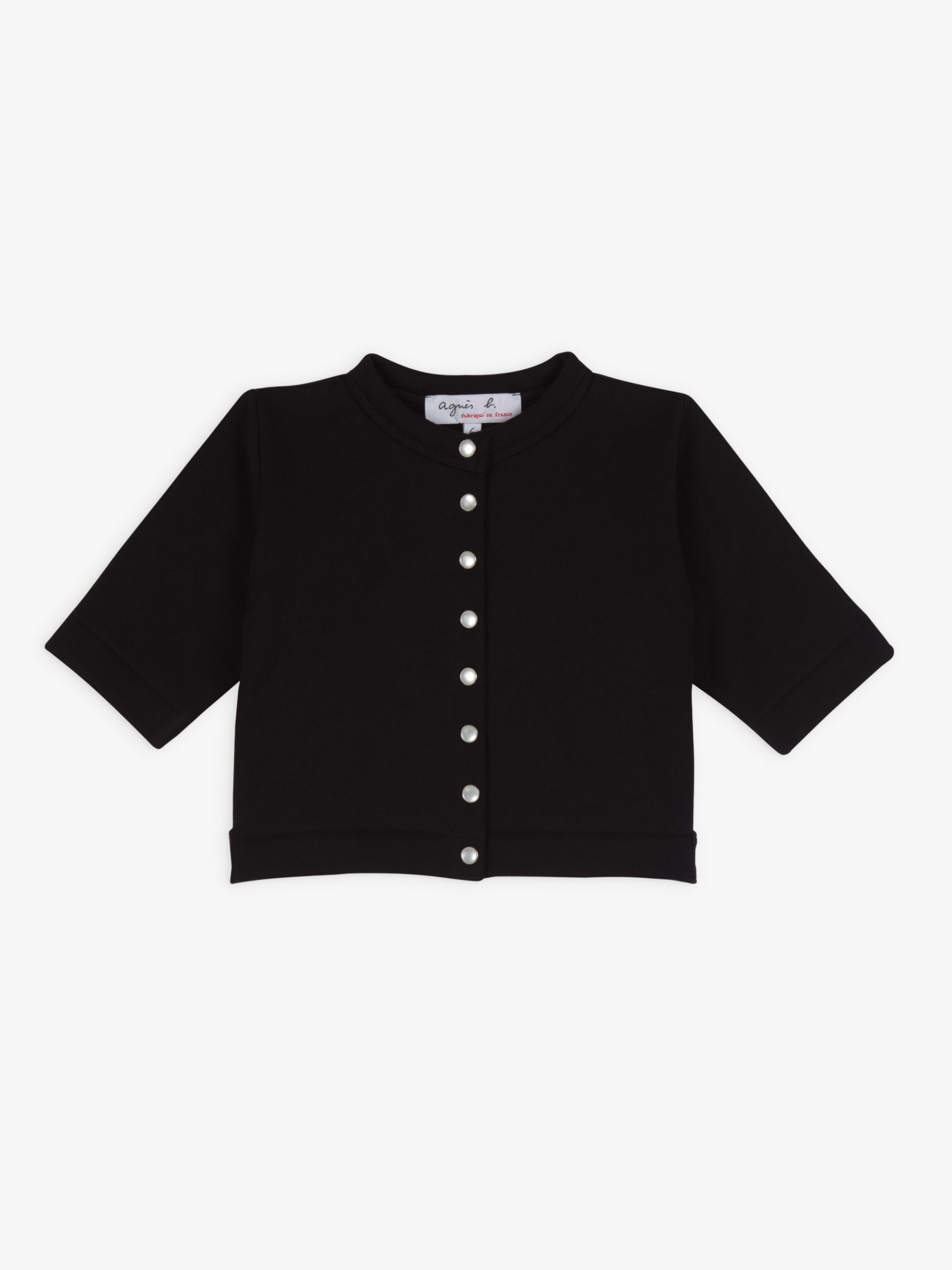 This snap cardigan is made from super-soft cotton fleece with mother-of-pearl snap buttons.