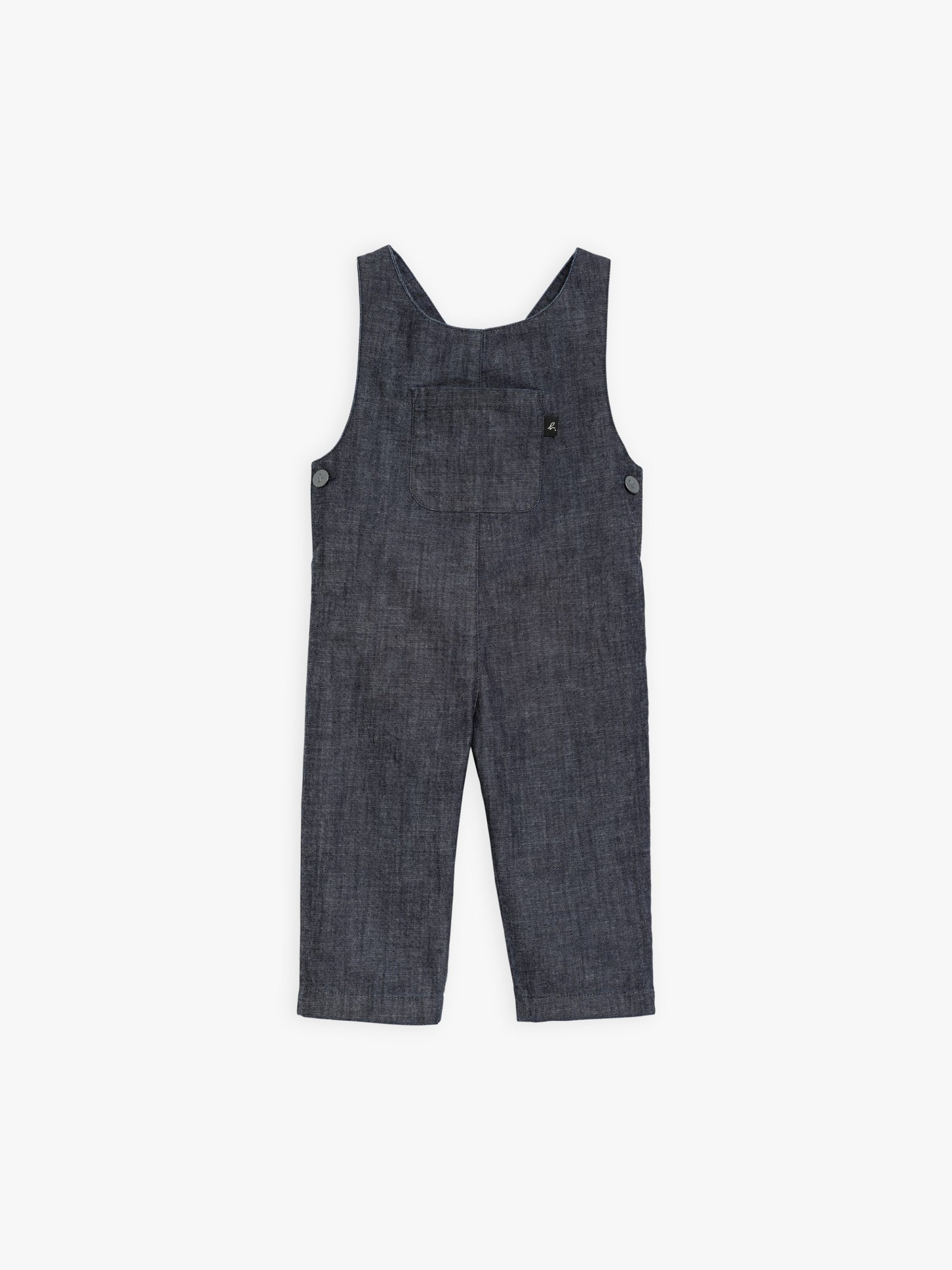 Comfortable and practical, the denim Arthur overalls have metal buttons engraved with the initial “b.”