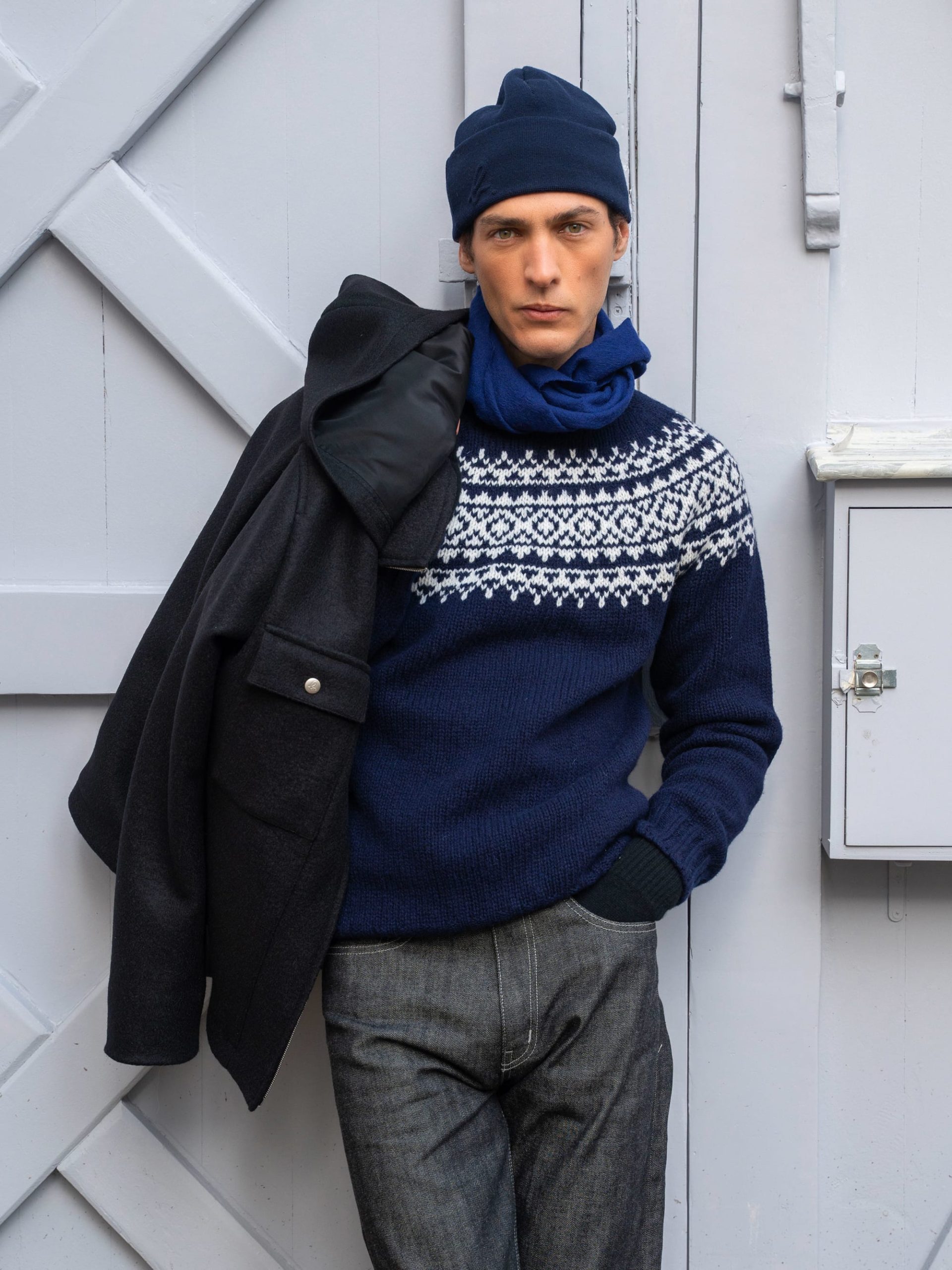 Aberdeen sweater, 100% wool knit sweater made in Scotland by our partner factory, which specializes in seamless, sustainable, and zero-waste knitting.