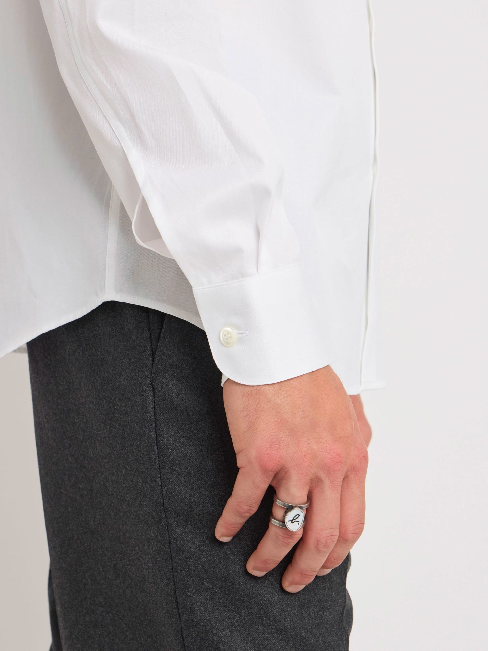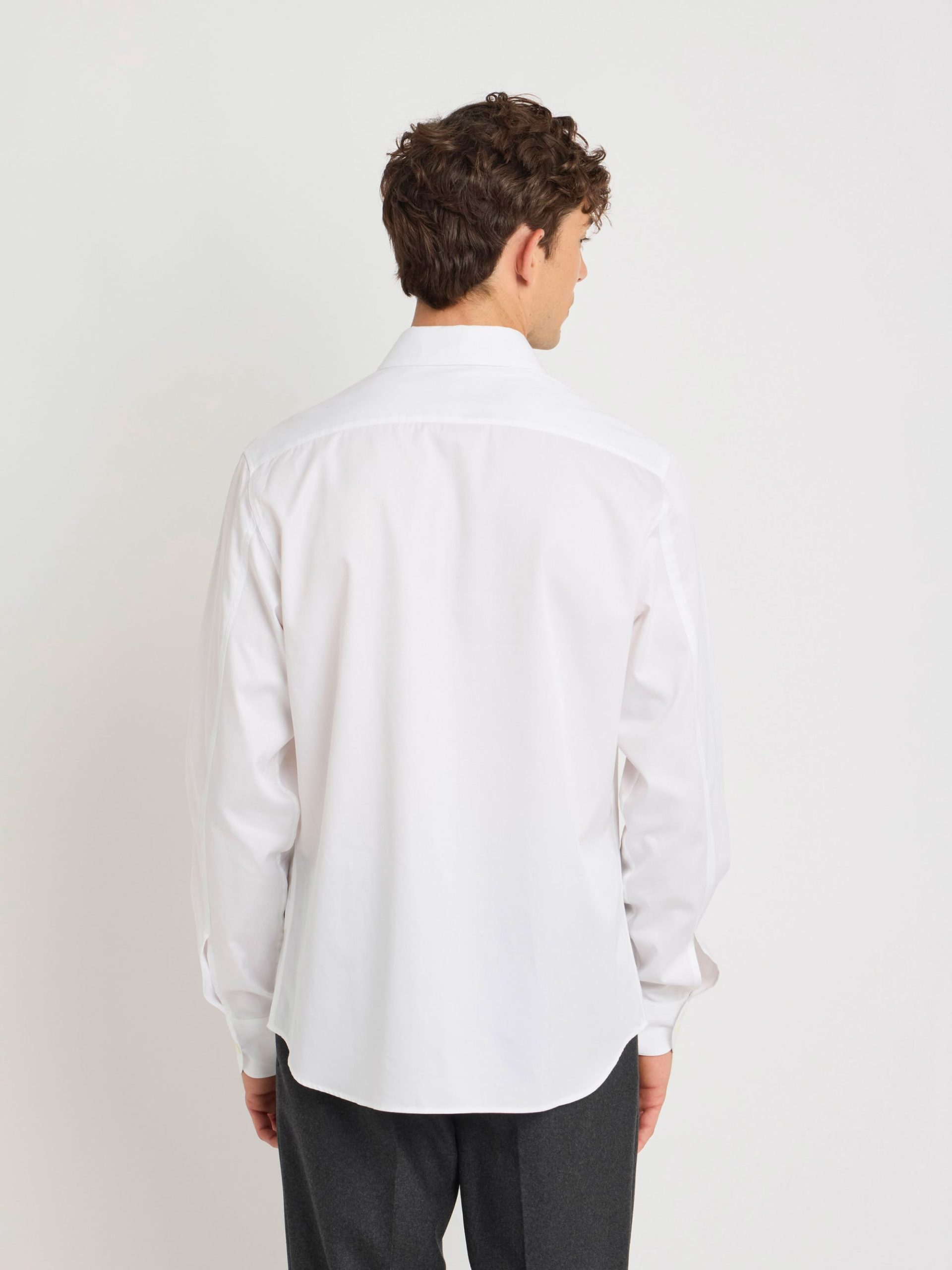 – Slightly fitted- Collar with 1-button collar stand- Long sleeves- Slit at the bottom of the sleeves- 1-button cuffs- Curved hemline on the sides- Back yoke- Button fastening