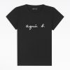 Agnesb Women’s Black Cotton Brando “agnès B.” Logo T-shirt | Noir|blanc|physalis