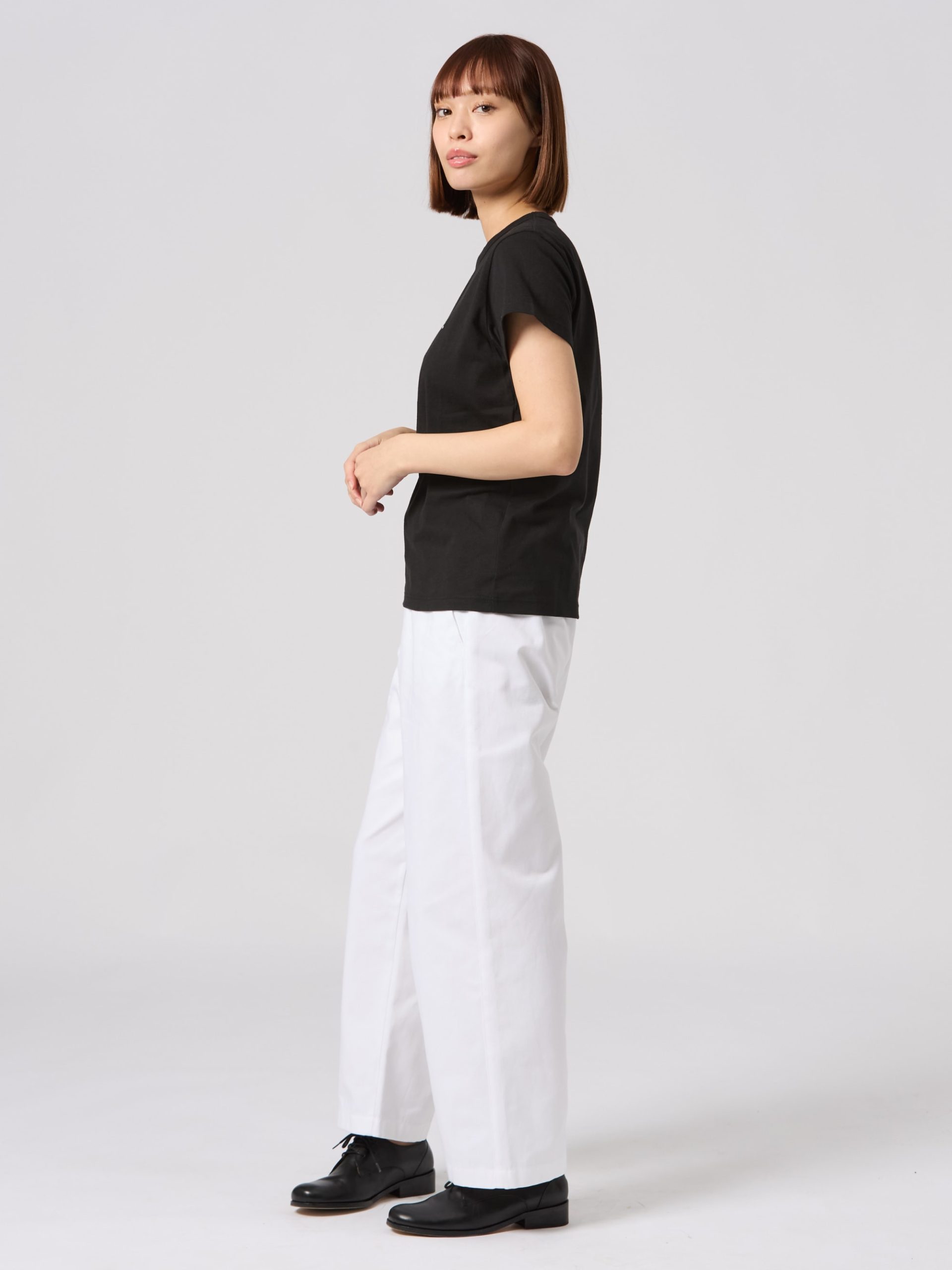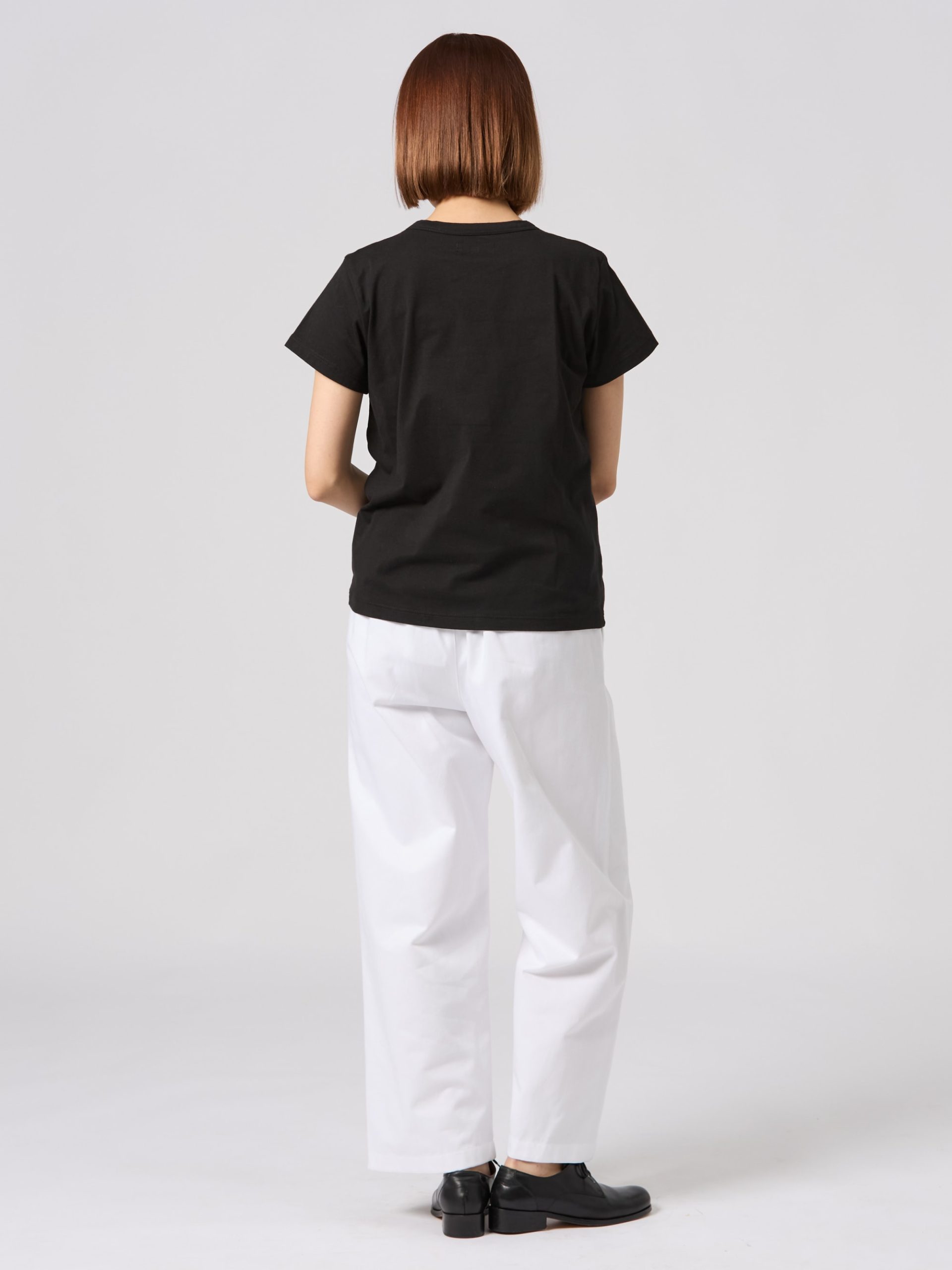 – Round neckline with contrasting trim- Short sleeves- Screen print on the front