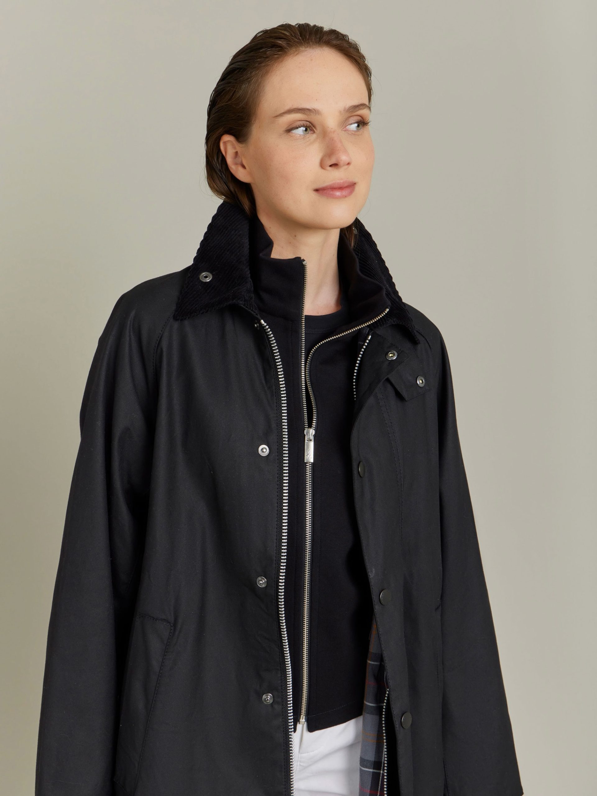 – Stand collar neck- Long sleeves- Front zip fastening for easy closure- Adjustable back tab for a tailored fit