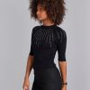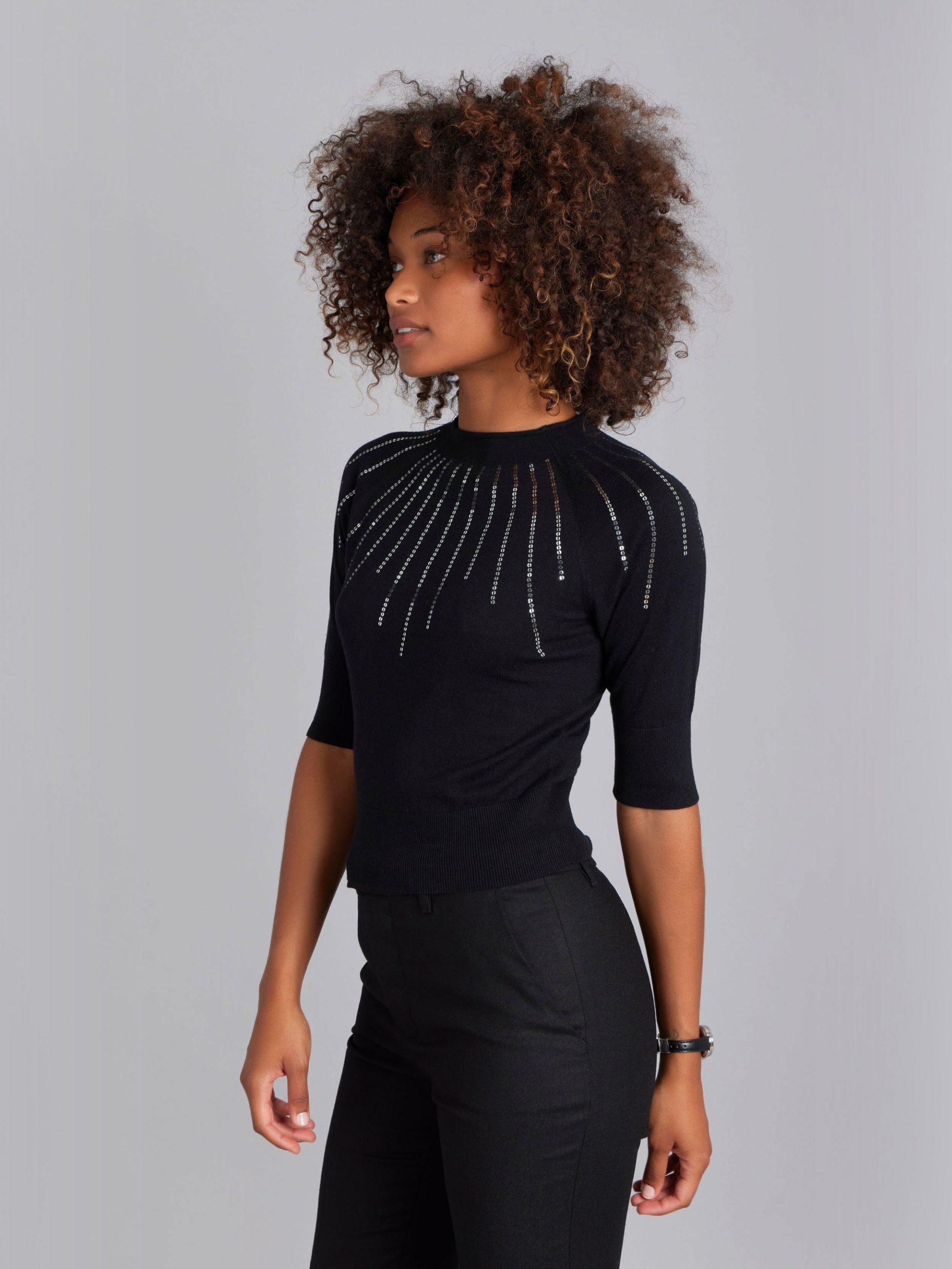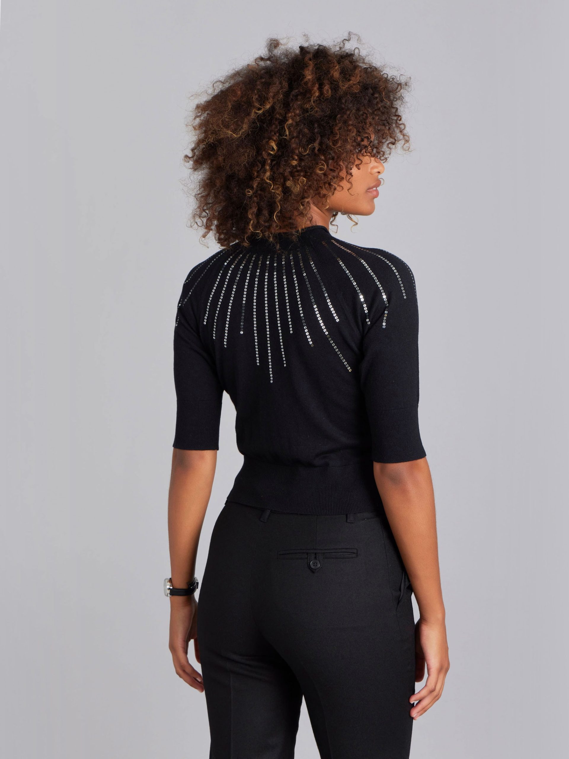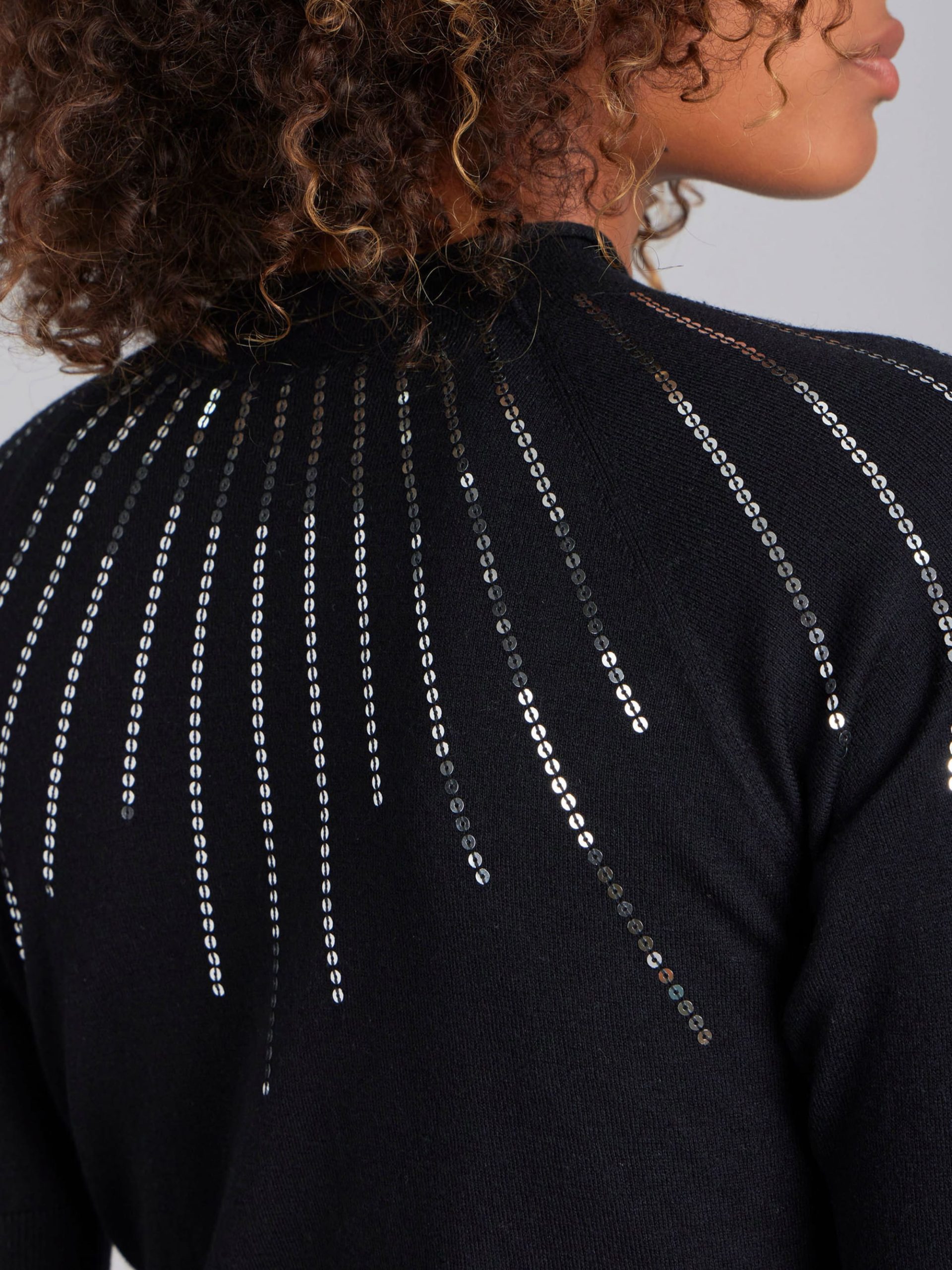 The intricate sequin detailing on the front and back neckline adds a touch of glamour to any outfit.