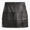 – Fringed hem for added dimension- 100% lambskin leather- Short skirt- Fully lined skirt