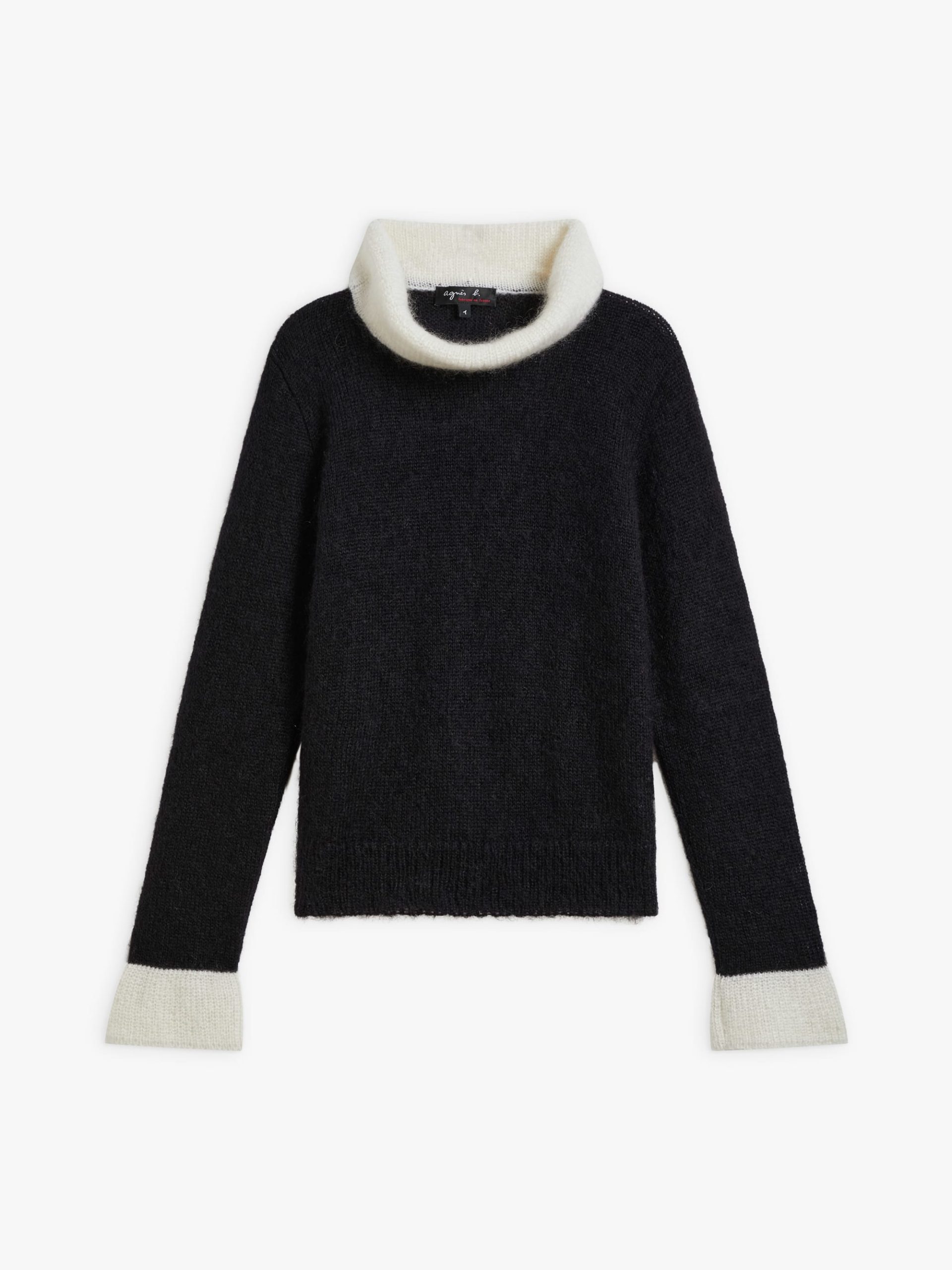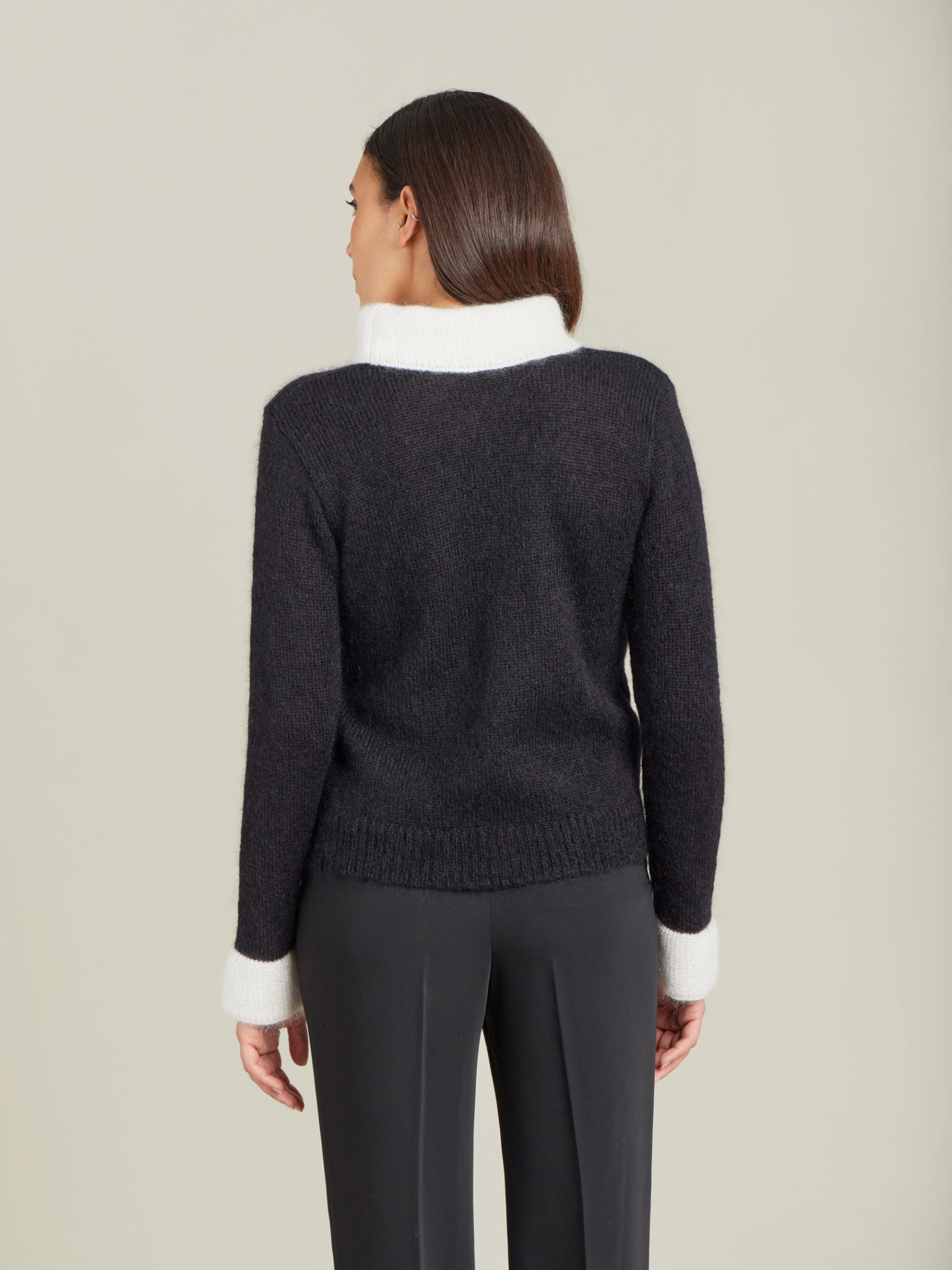 Wrap yourself in the luxurious softness of the Fridge mohair jersey sweater, expertly crafted in France. This high-neck knit combines modern contrasting details with a fluffy, textured finish, creating a playful yet sophisticated silhouette.