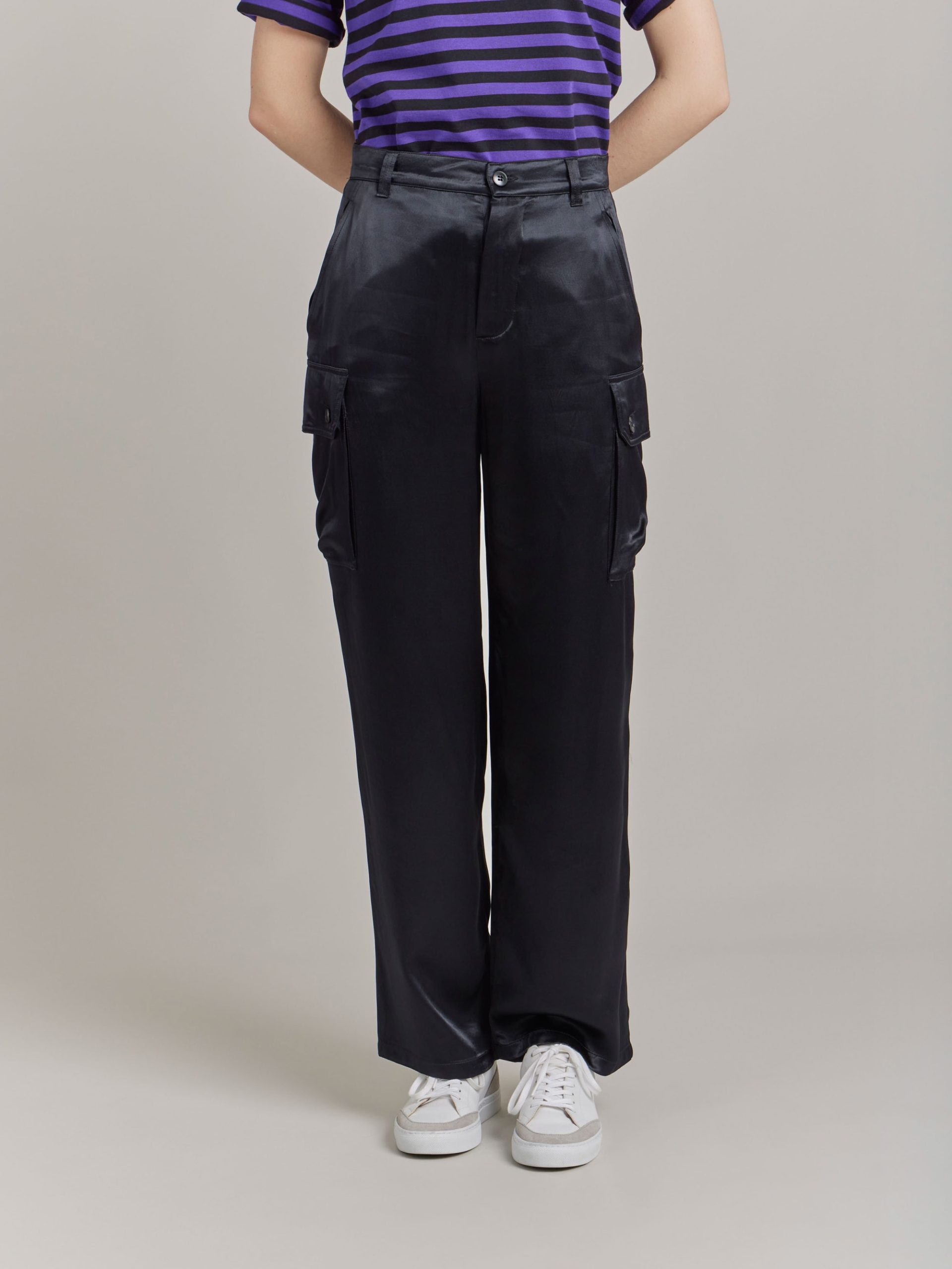 Be the first to review “Agnesb Women’s Black Satin Cargo Pants | Noir” Cancel reply
