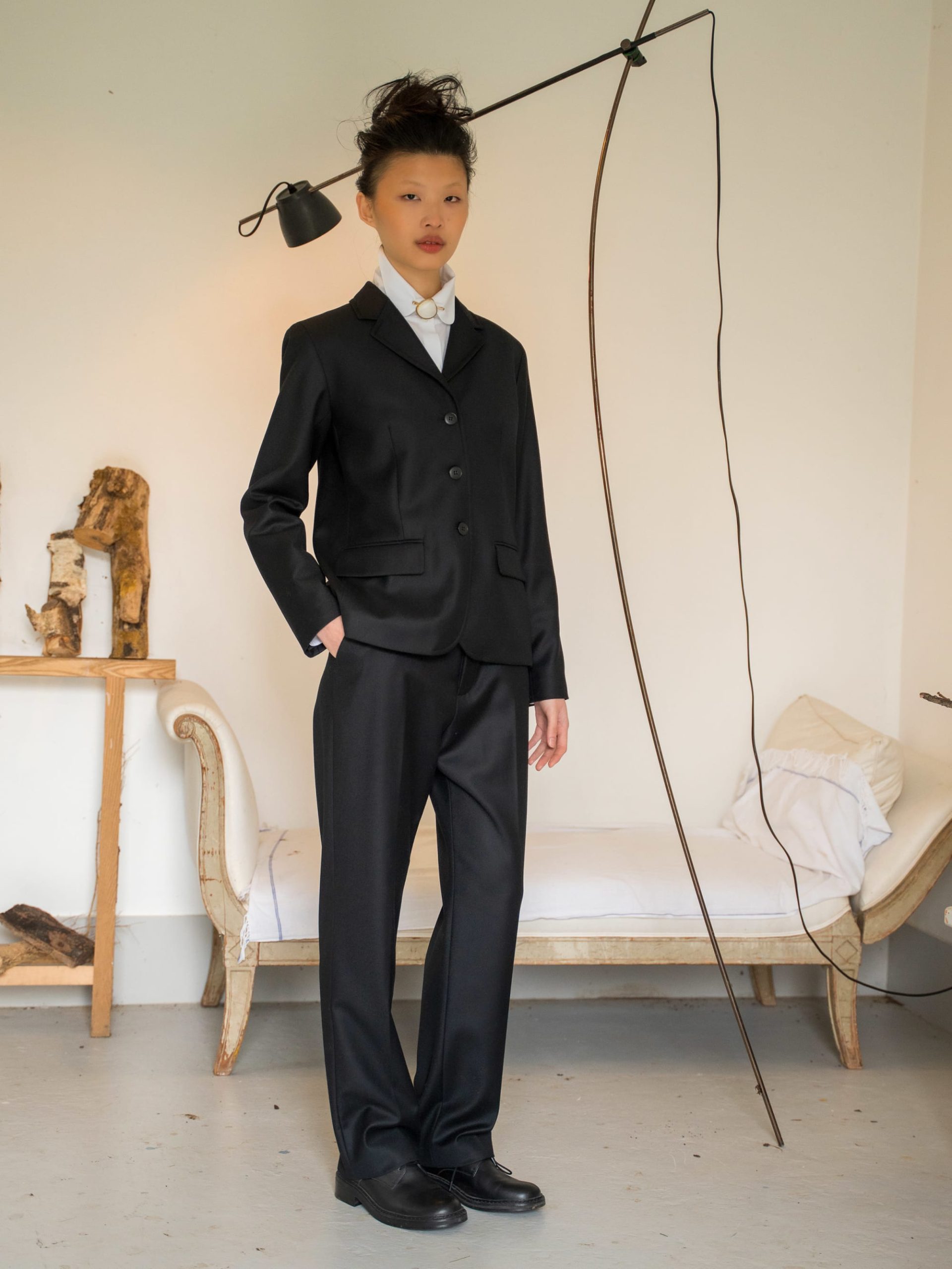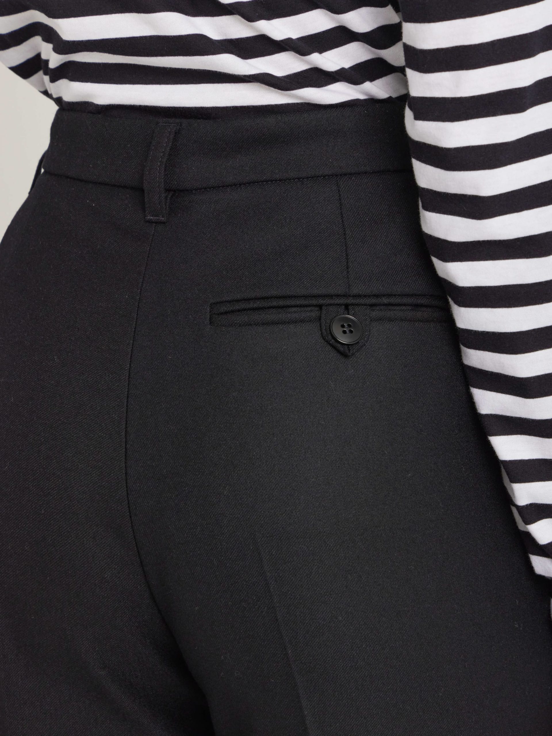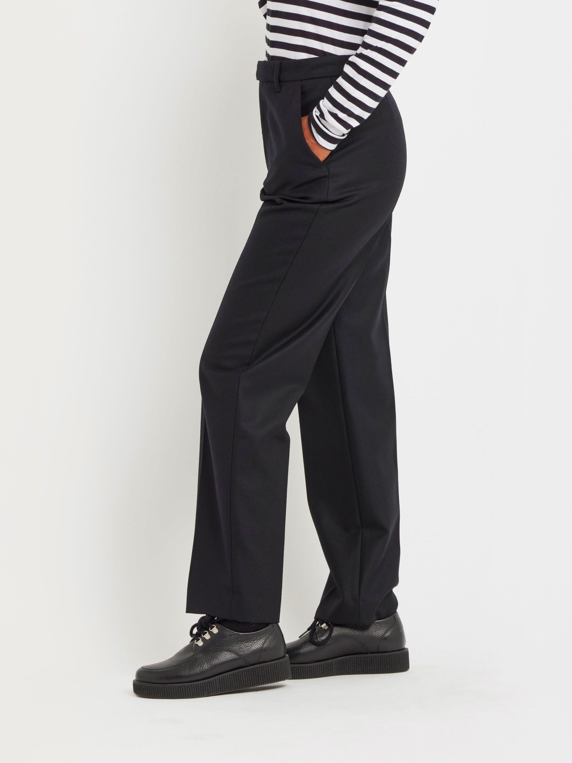 Ameline wool gabardine pants. Discover the softness and quality of 100% Peruvian wool, sourced from ethical and controlled production. This exceptional material offers natural warmth and a beautiful drape. This season, Agnès is using it to transform workwear into casual chic pieces, combining comfort and elegance.