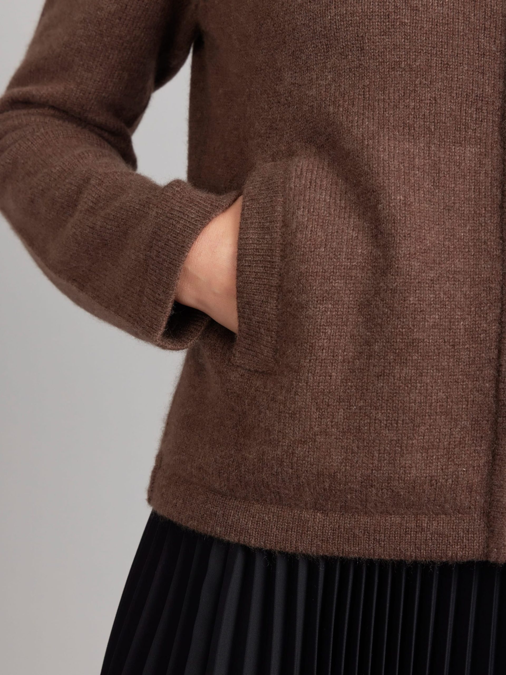The unique design of the Zip cardigan makes it an ideal choice for those who seek a classic yet modern twist on traditional knitwear.