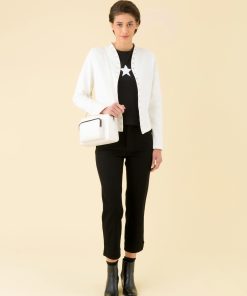 Its classic, timeless silhouette is complemented by statement details such as the metal ring on the zipper pull and ribbed trim at the hemline and cuffs.