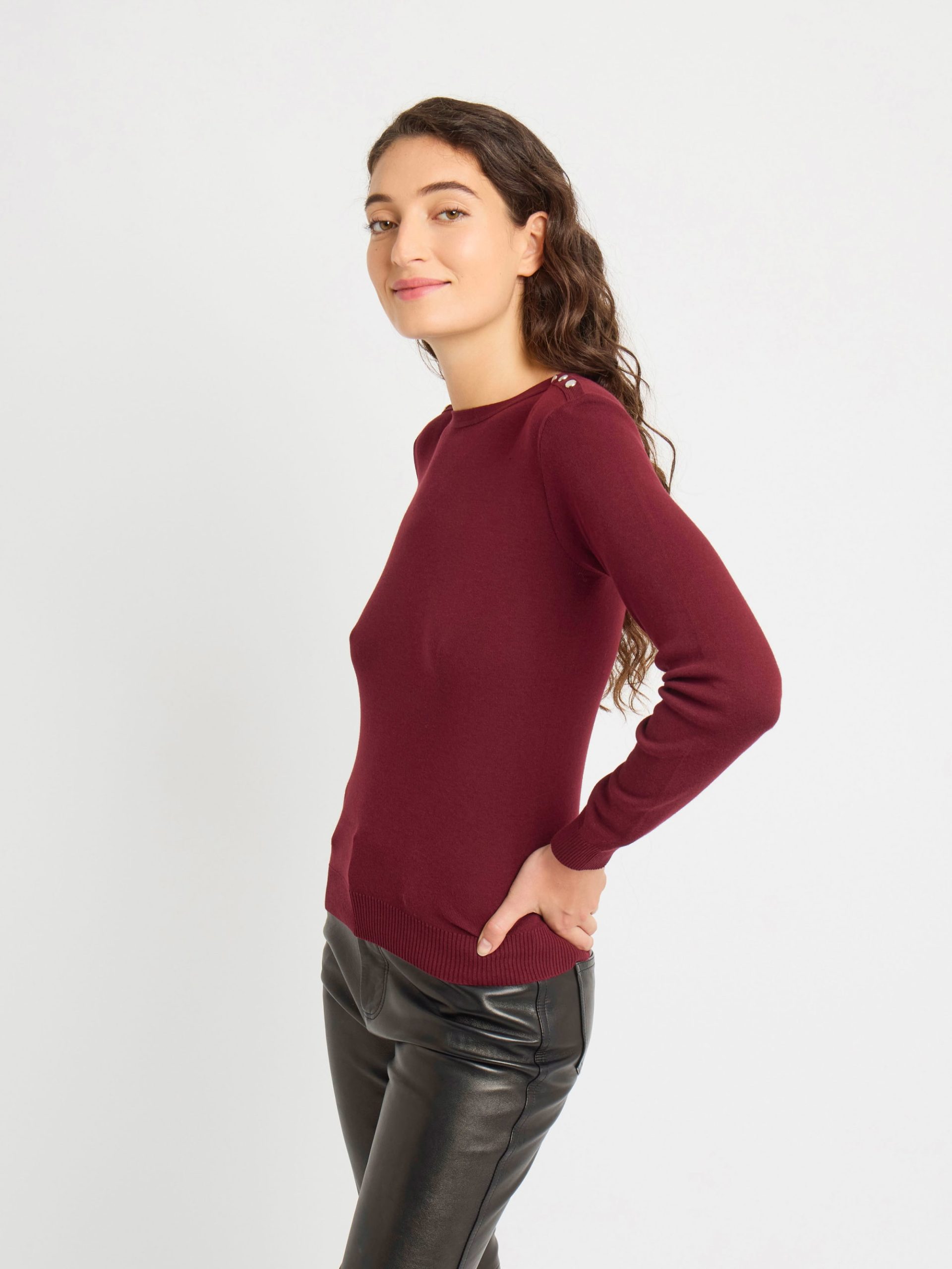 Made in France, the Badiane sweater is crafted from soft cotton jersey and detailed with pearl silver-tone snap buttons along the shoulders. Its boat neckline and long sleeves create a refined silhouette that is both effortless and versatile.