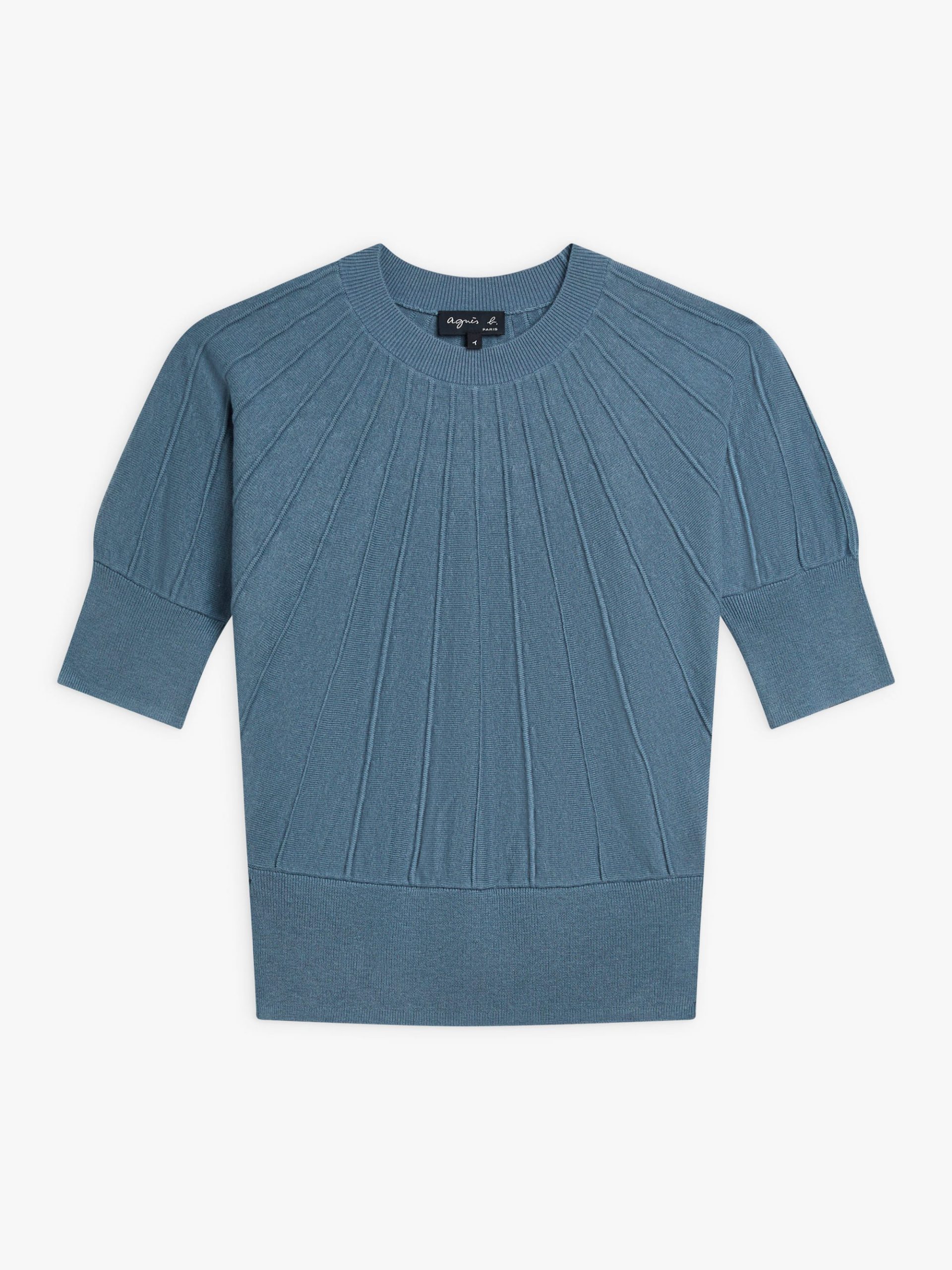 – Round neckline- Elbow dolman sleeves- Ribbed finishes