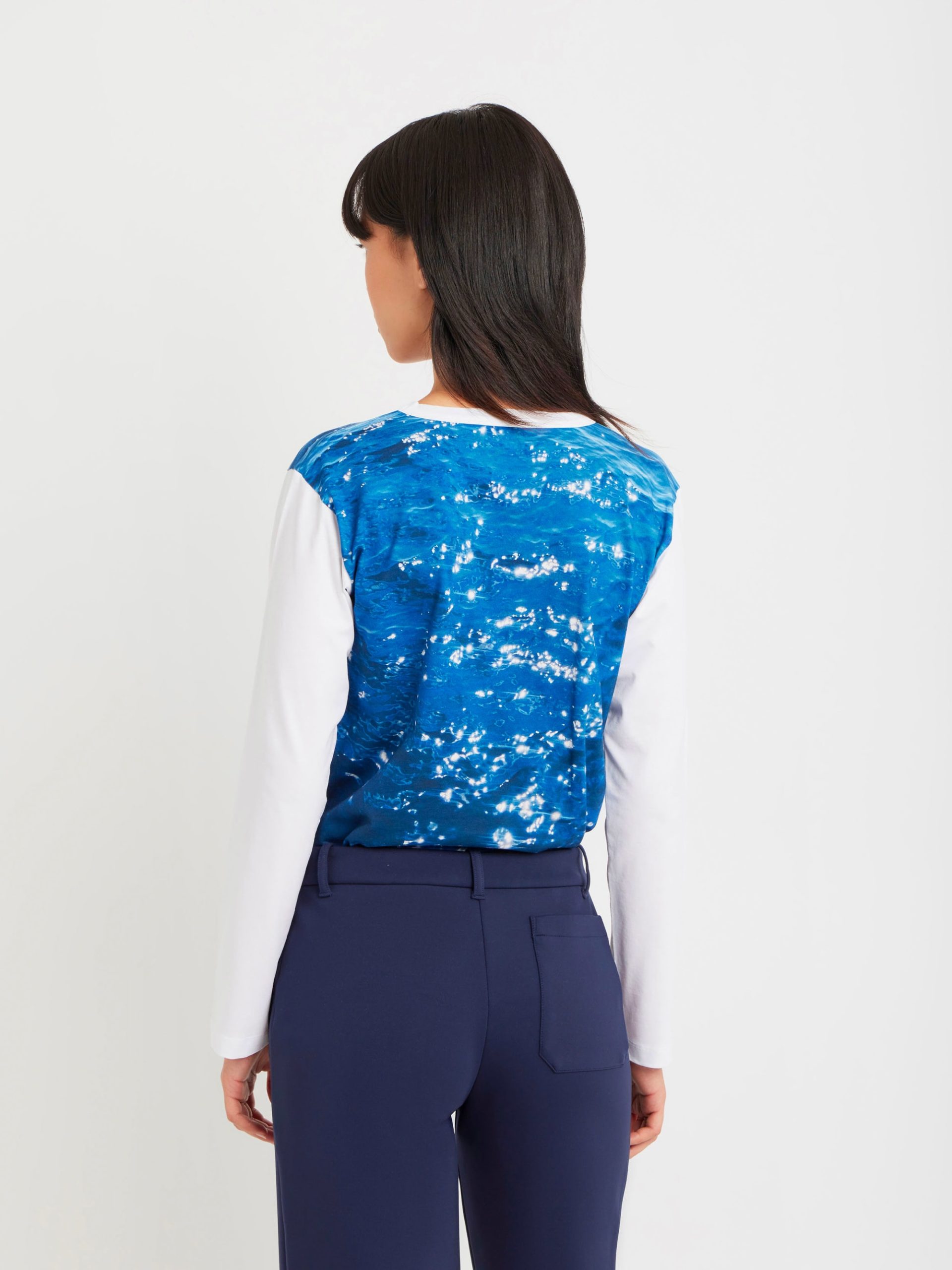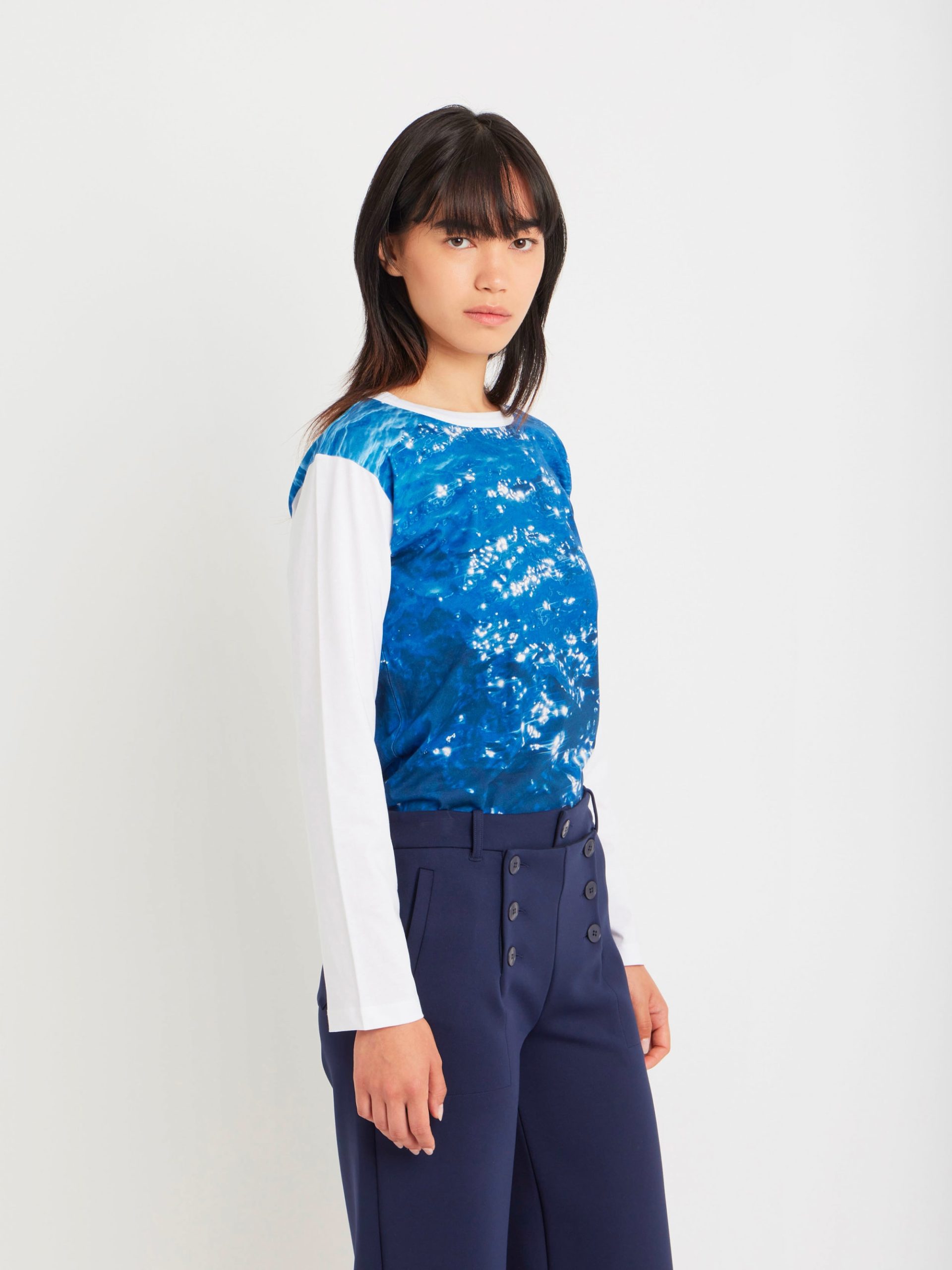– Organic cotton- Round neckline- Long sleeves- Digital photo print of Cap d’Antibes by agnès b.