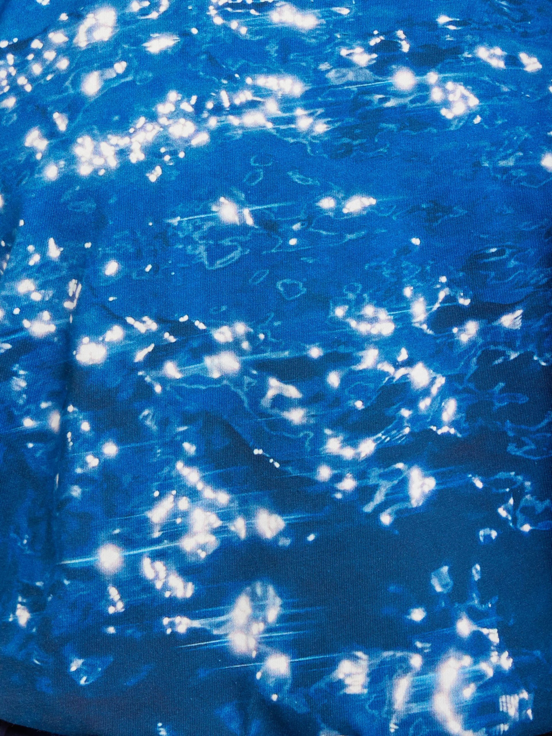 Crafted in organic cotton, grown without GMOs, the New Cool Bicolor t-shirt features a striking digital photo print of Cap d’Antibes (a famed peninsula on the French Riviera) by agnès b. The contrast between the printed body and solid-color sleeves enhances the bold water-inspired design, making it a unique statement piece.