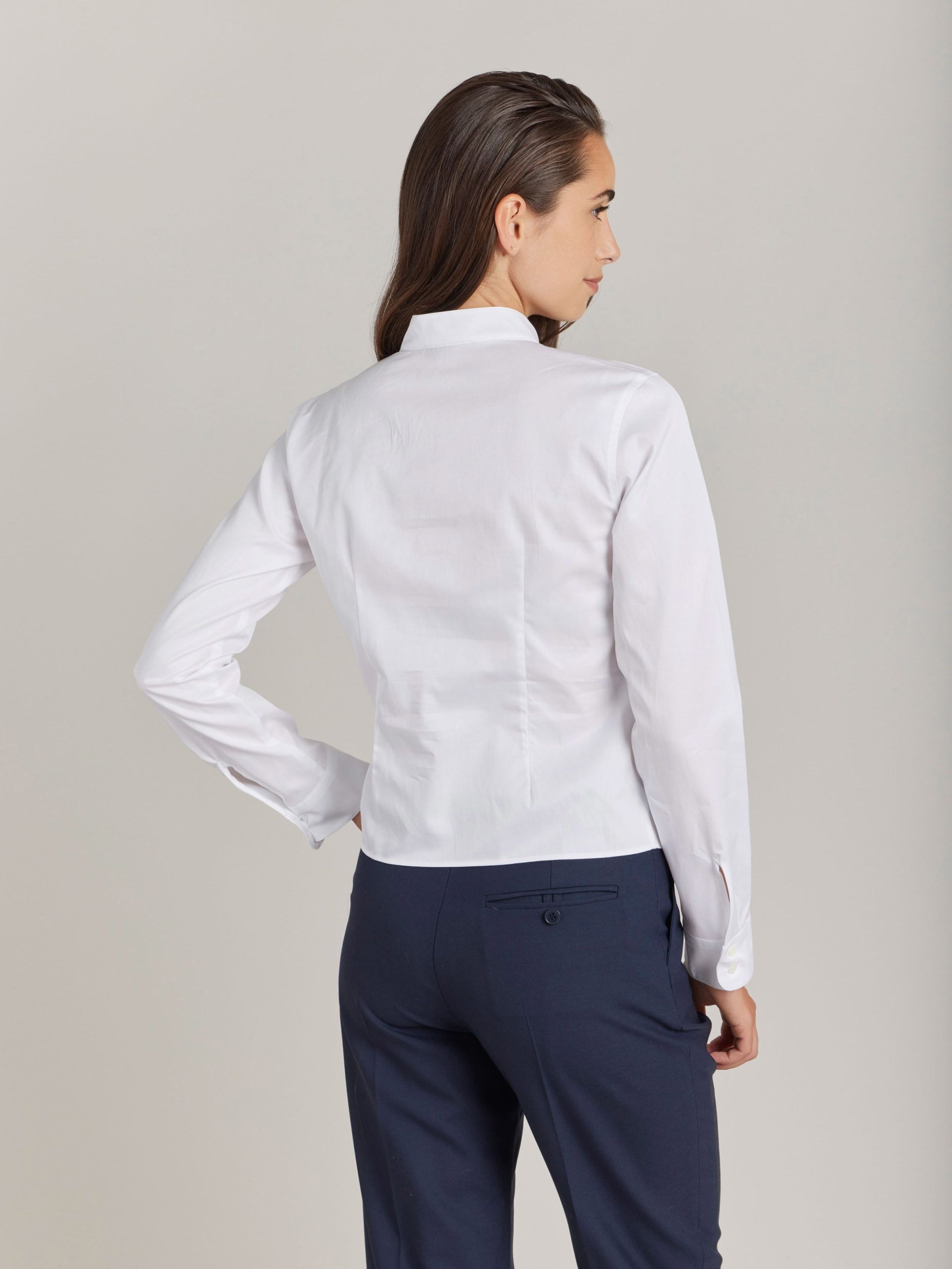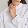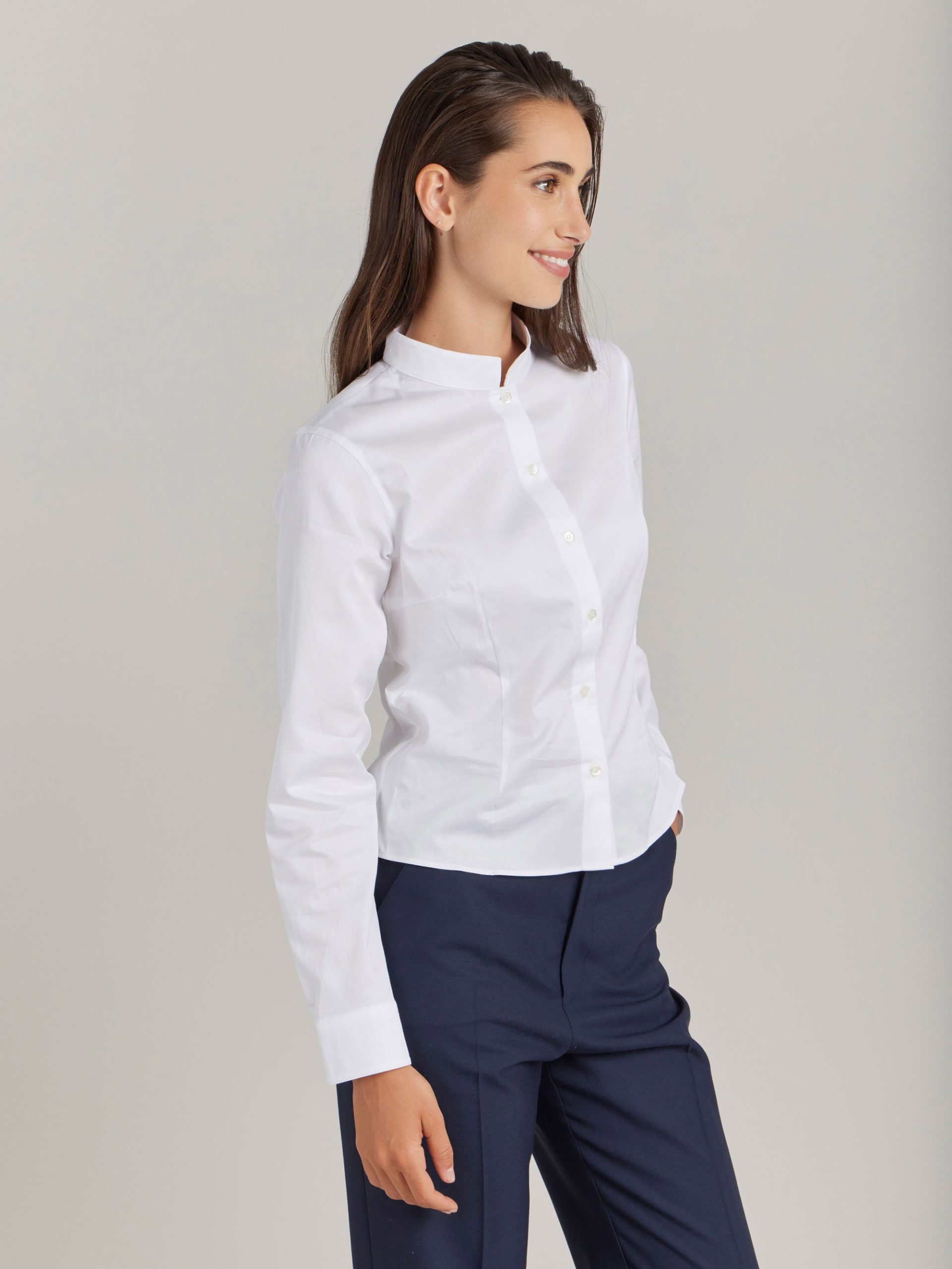 – Stand collar- Straight cut- 100% cotton- Long sleeves with rounded cuffs fastening with 2 buttons- Bust dart- Button fastening- Made in France