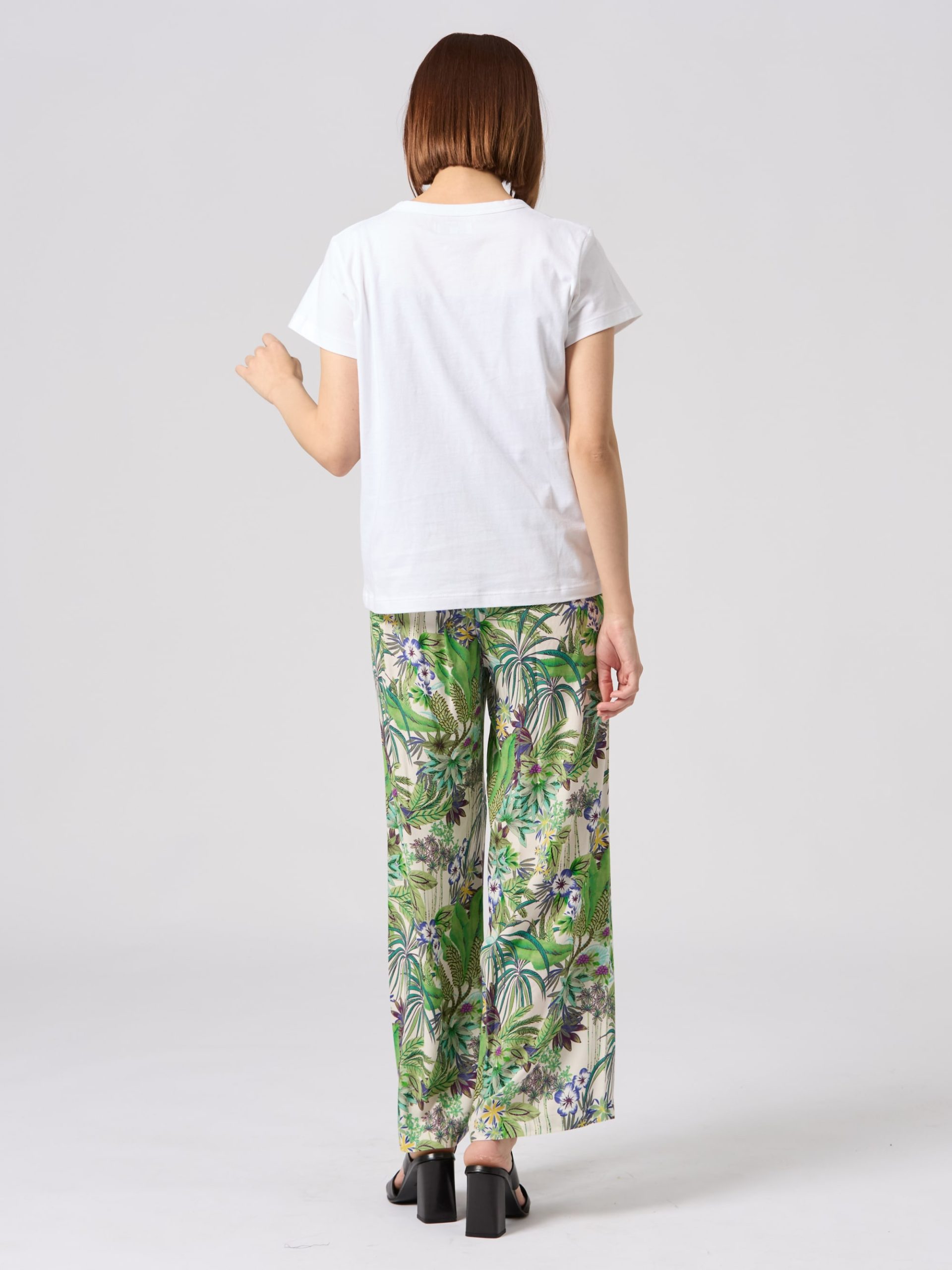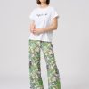 – Round neckline with contrasting trim- Short sleeves- Screen print on the front