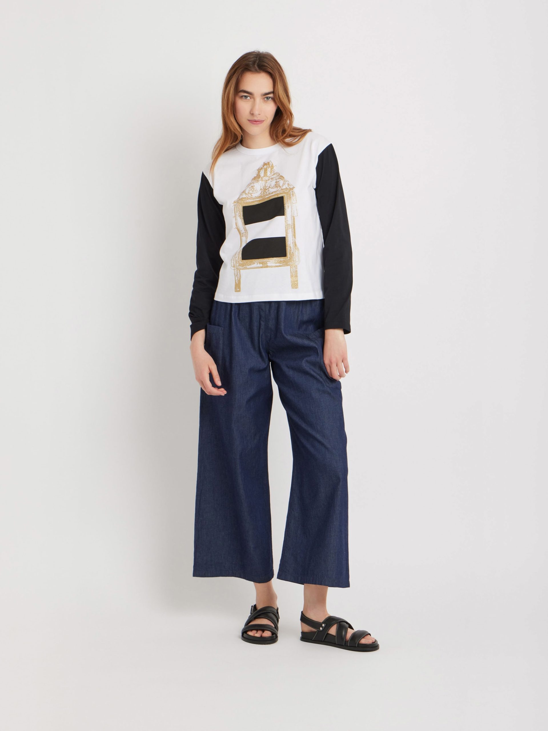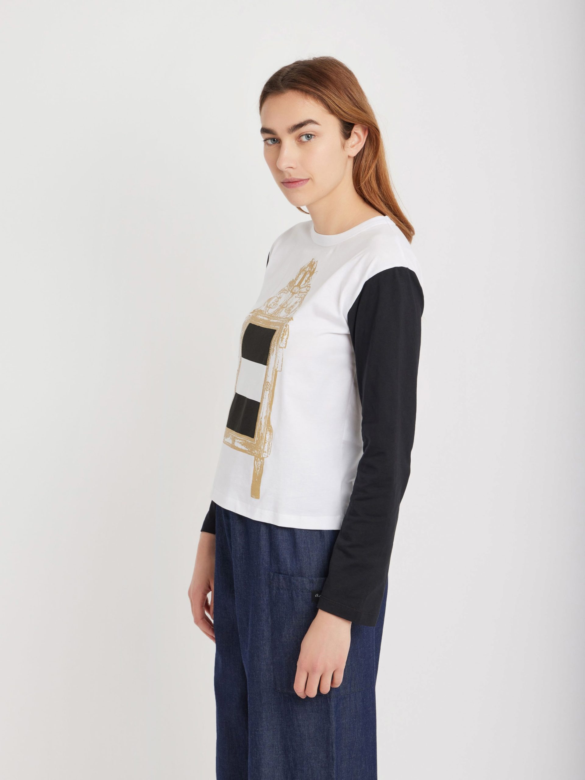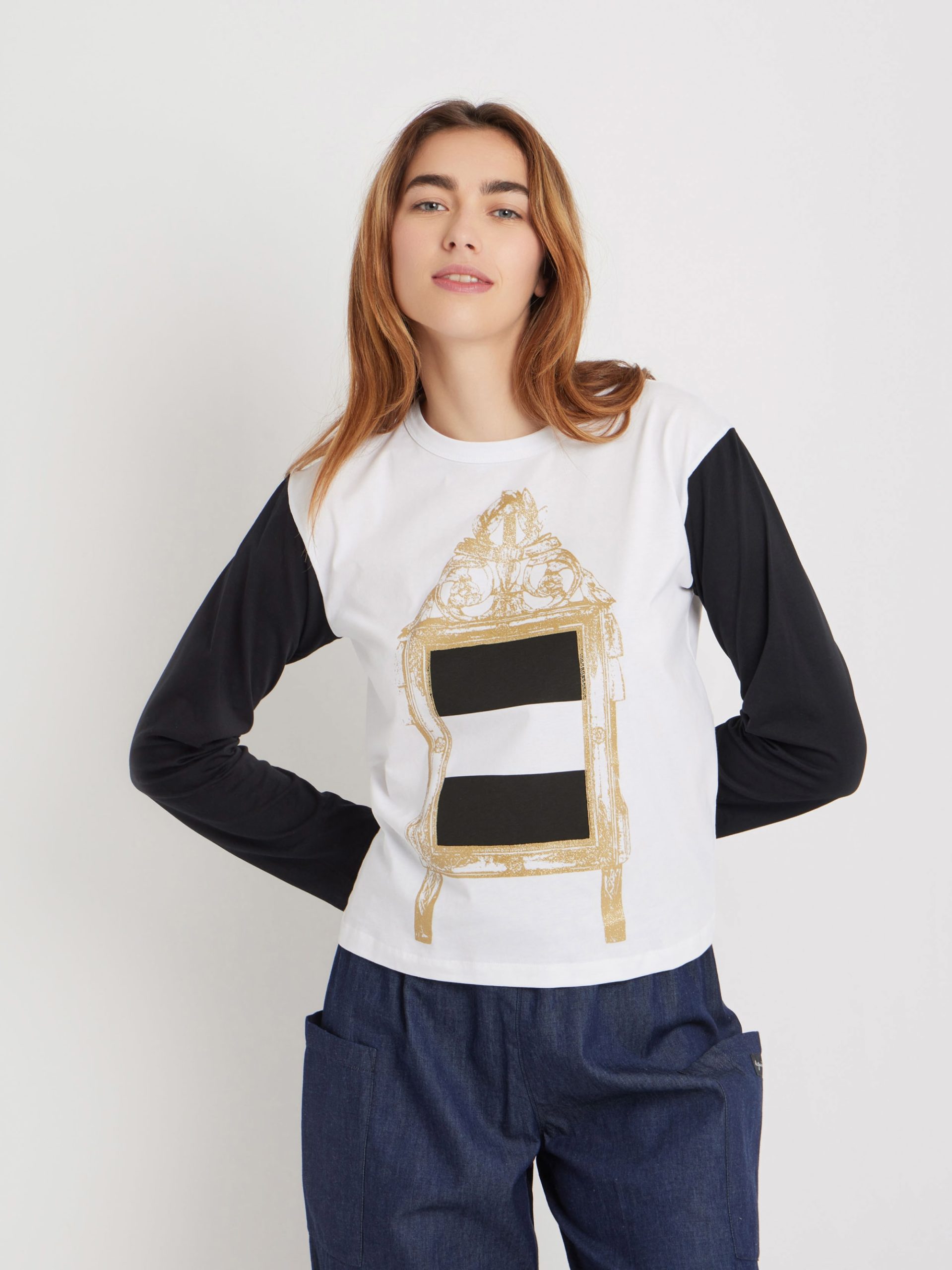 Cotton jersey Cool t-shirt with “Miroir doré rayures” (Golden mirror stripes) screen print.