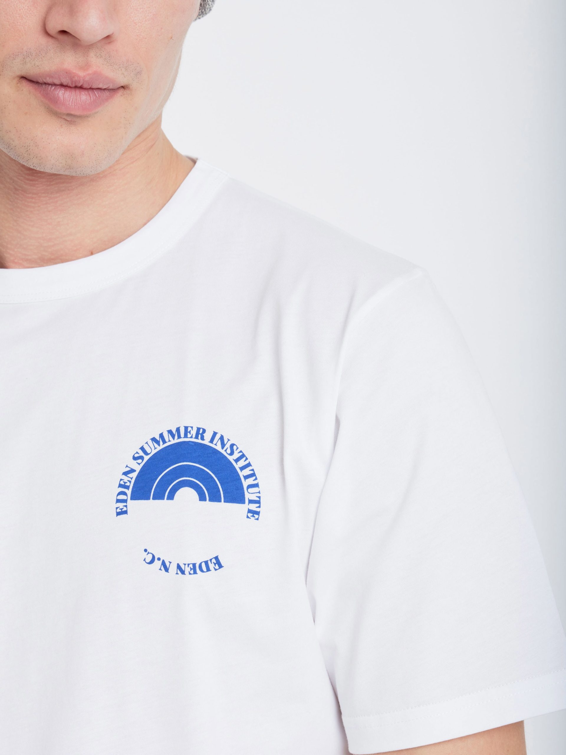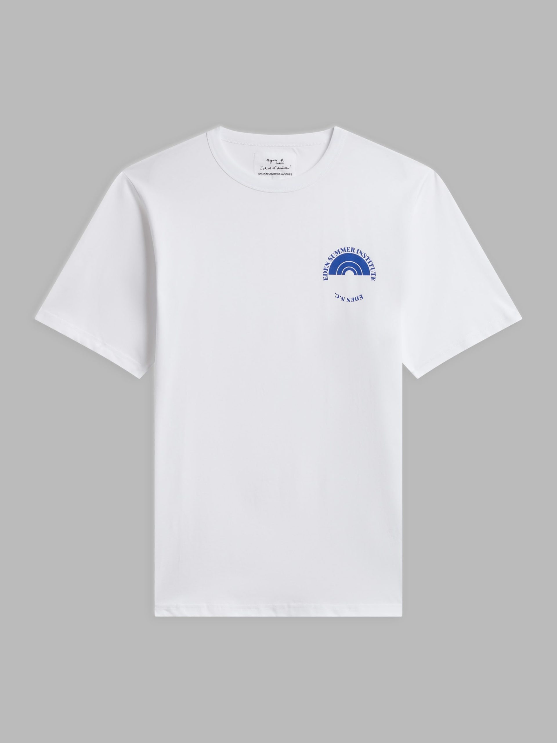 This unisex t-shirt is crafted from soft, organic cotton jersey. It features a screen print of the Eden Summer Institute emblem—an ongoing collaborative art project led by French artist and researcher Sylvain Couzinet-Jacques.
