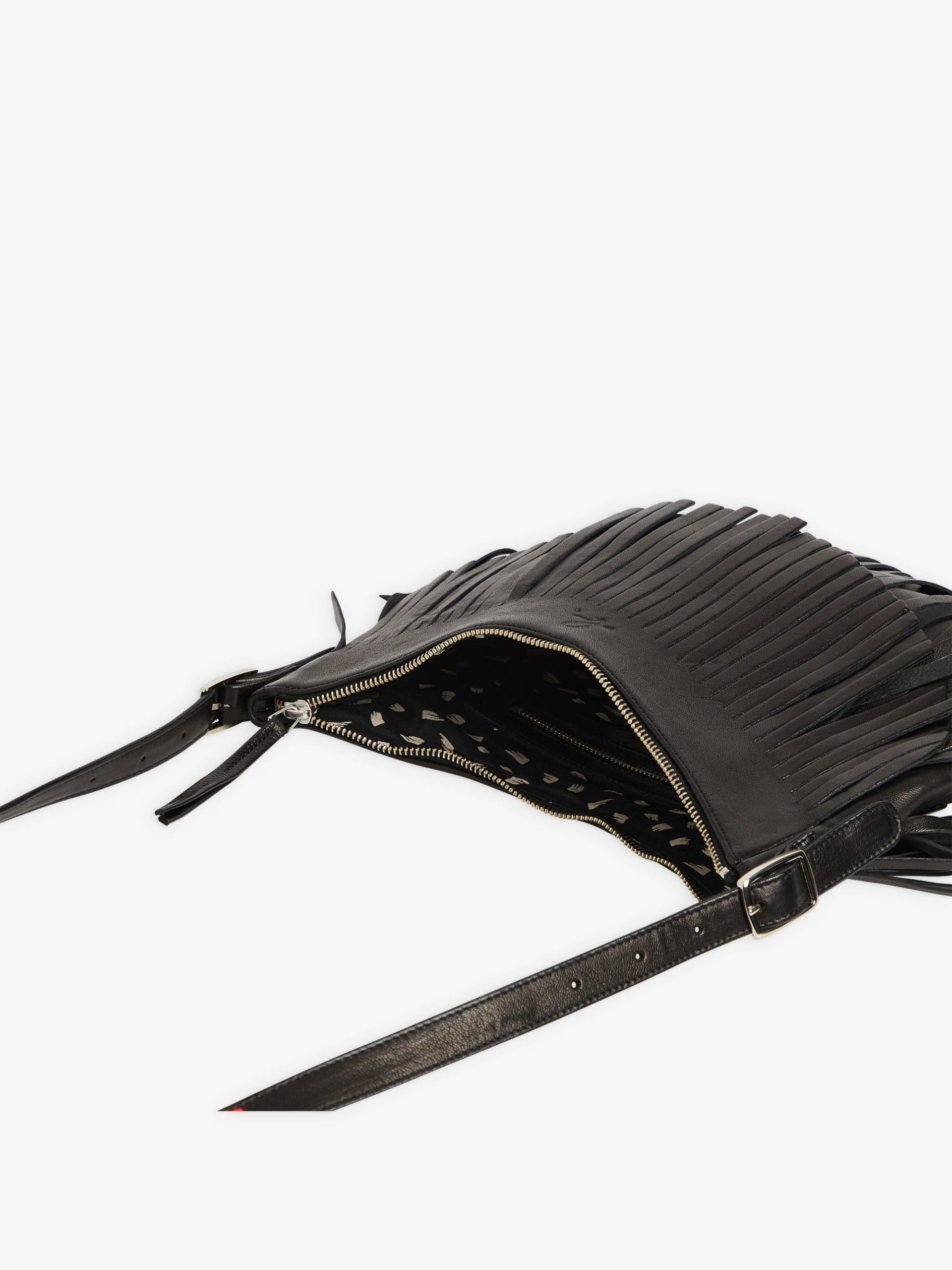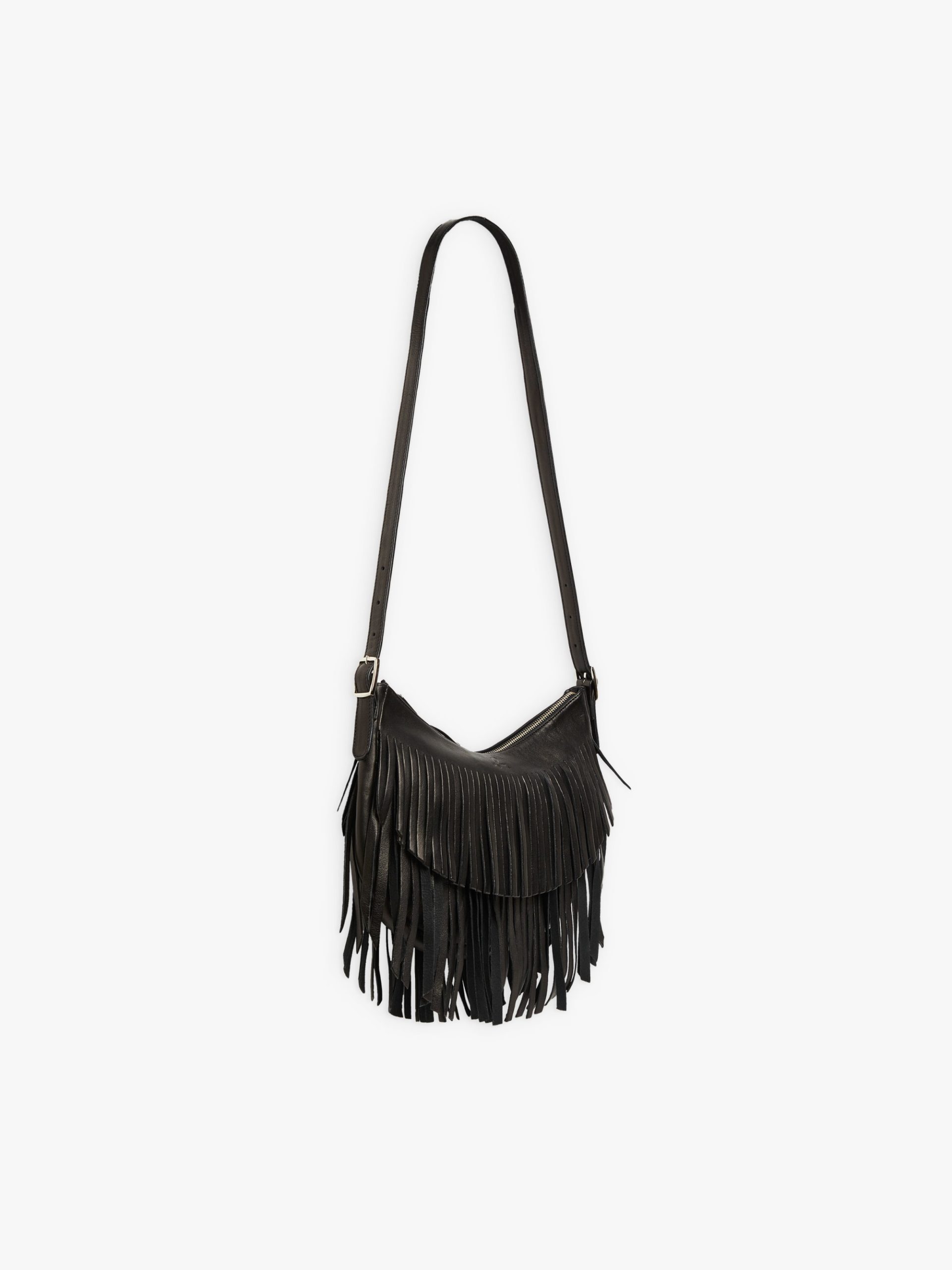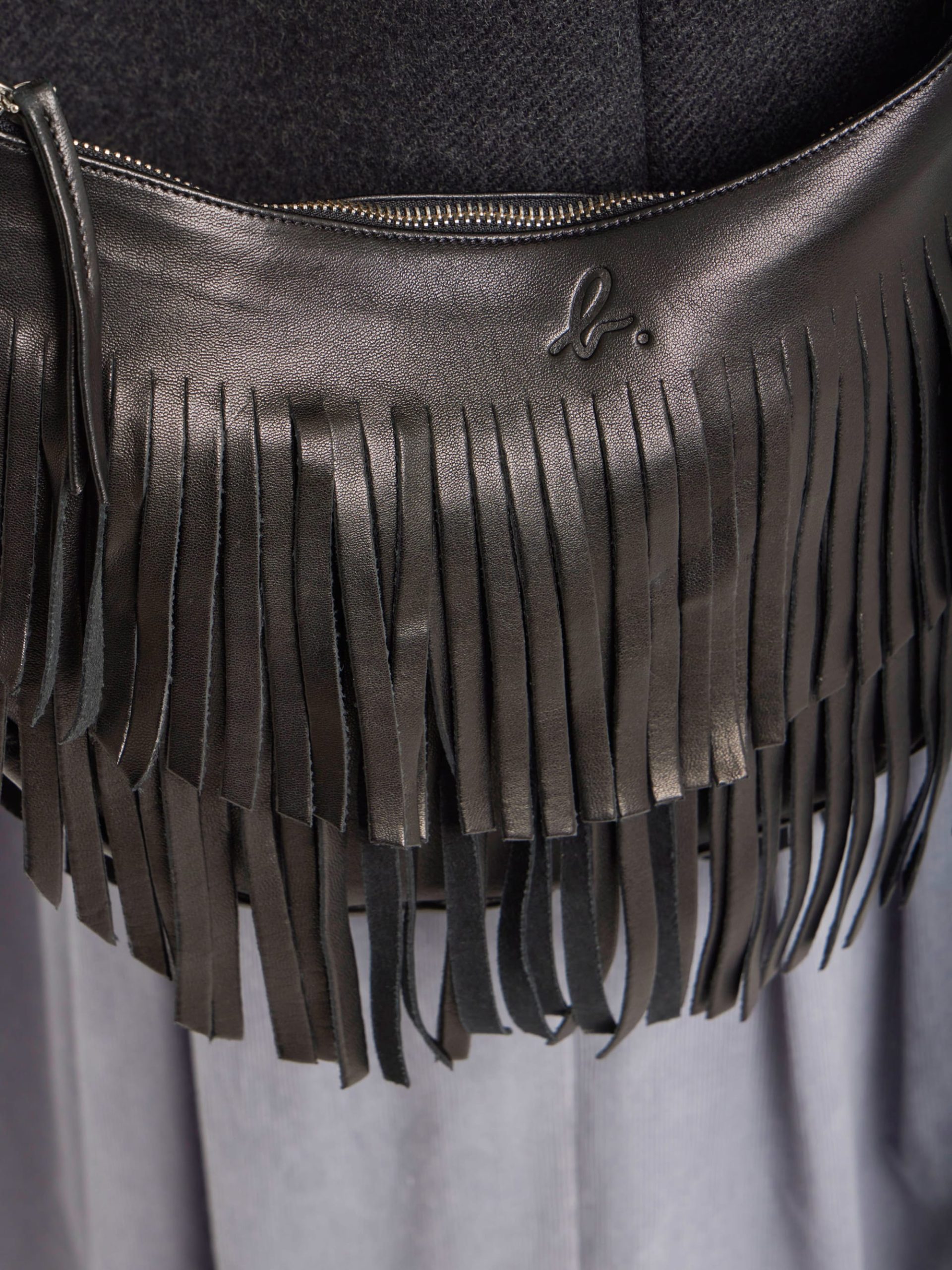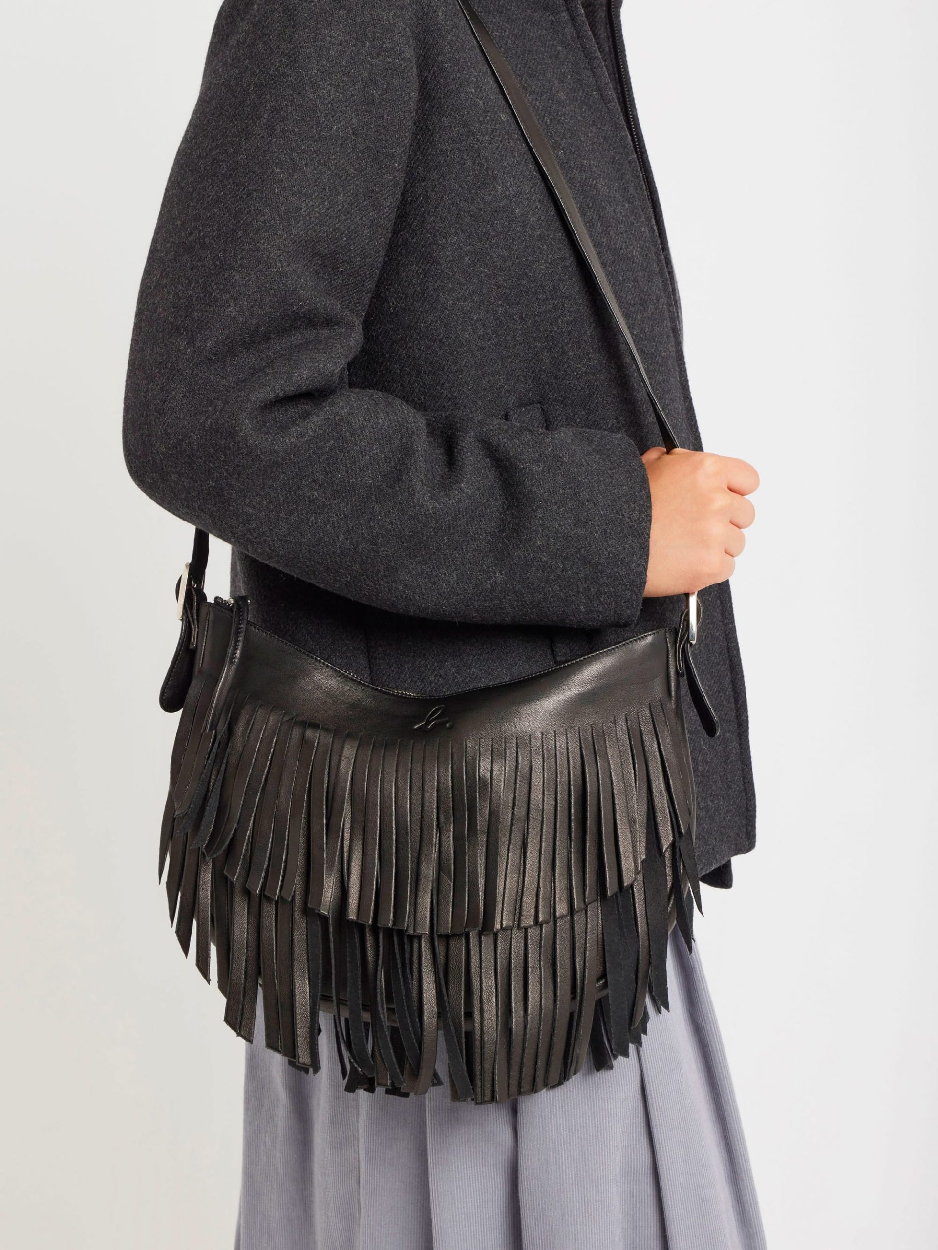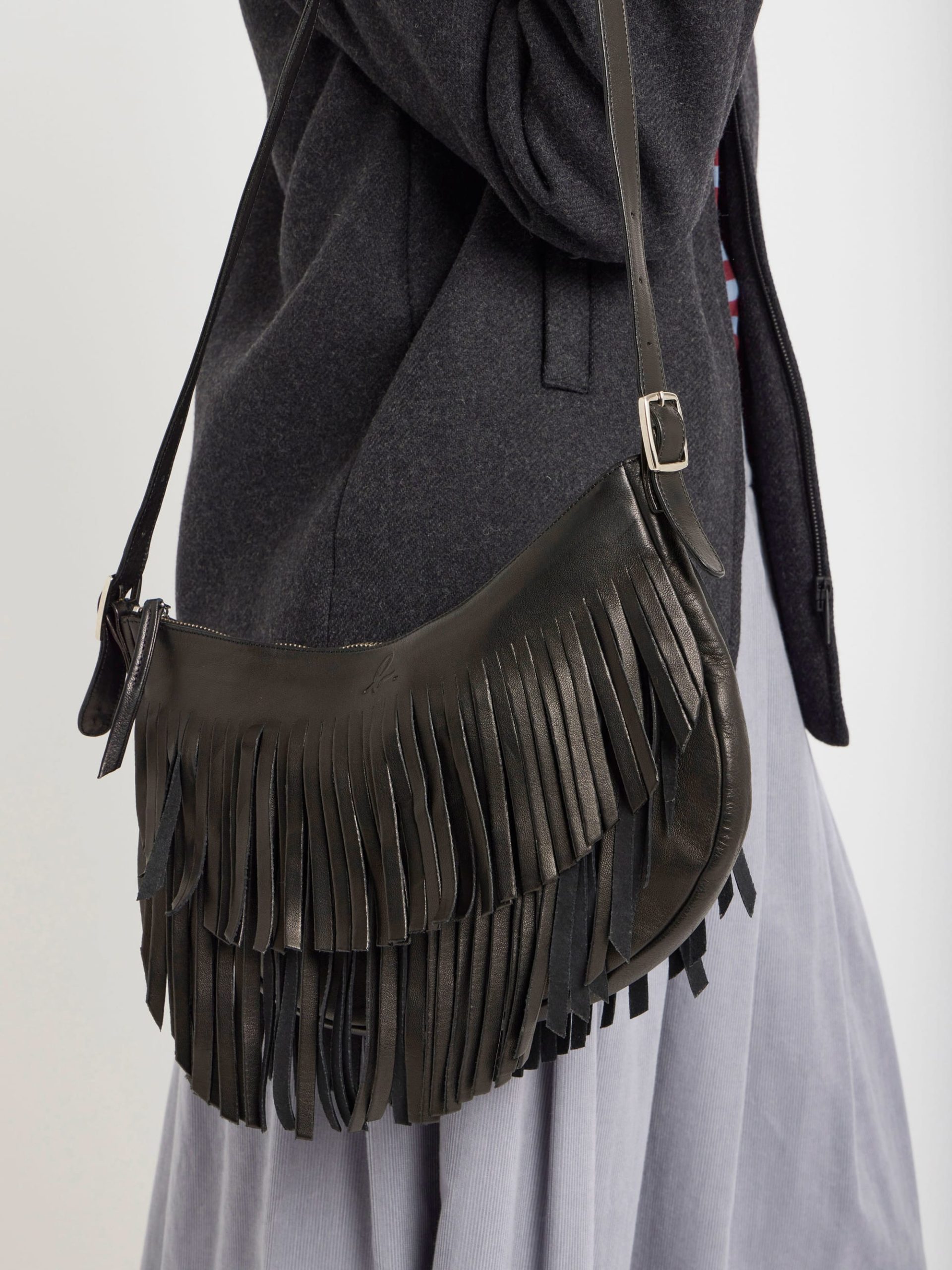 The Awa bag is crafted from smooth leather and detailed with flowing fringes.