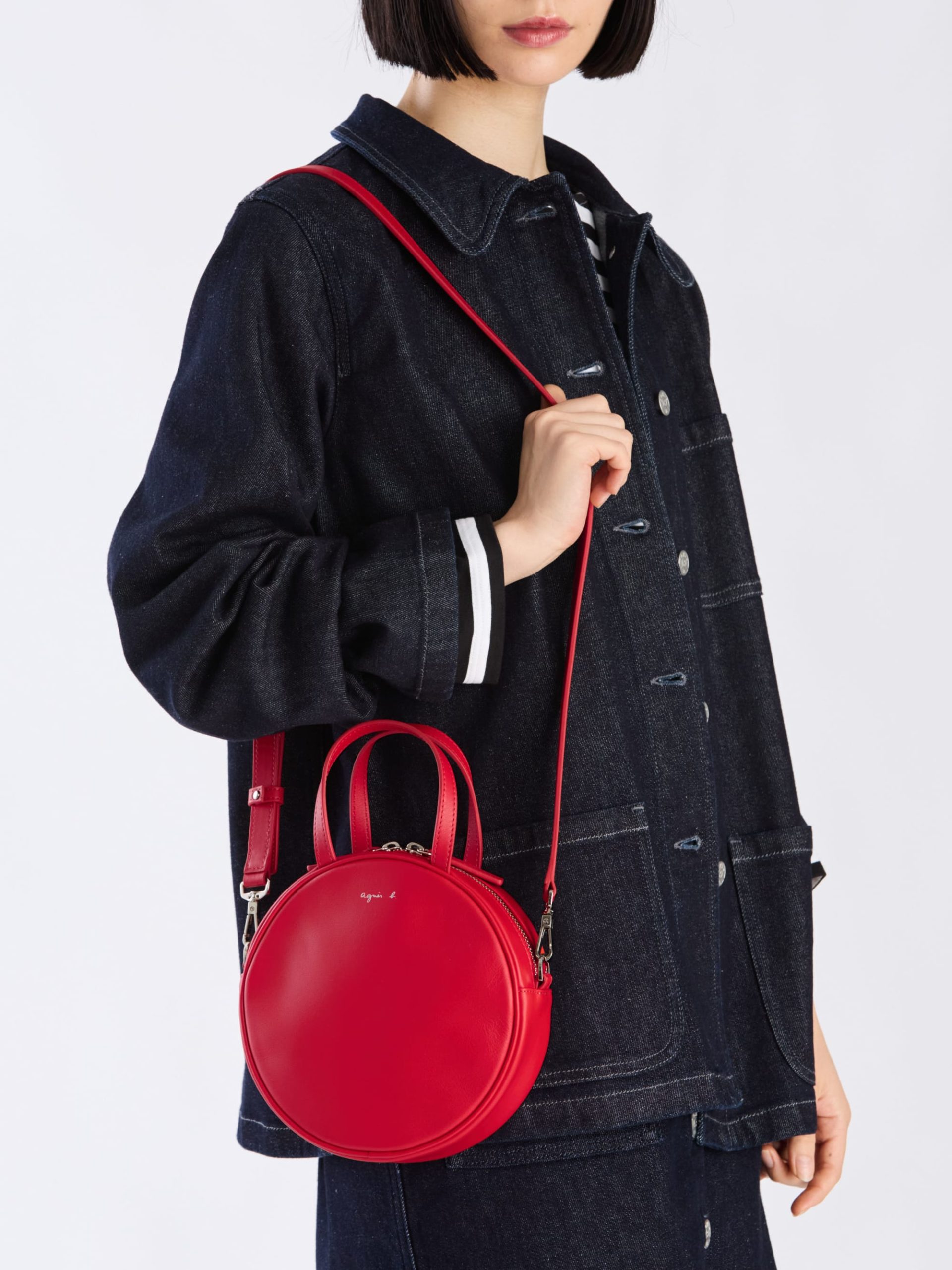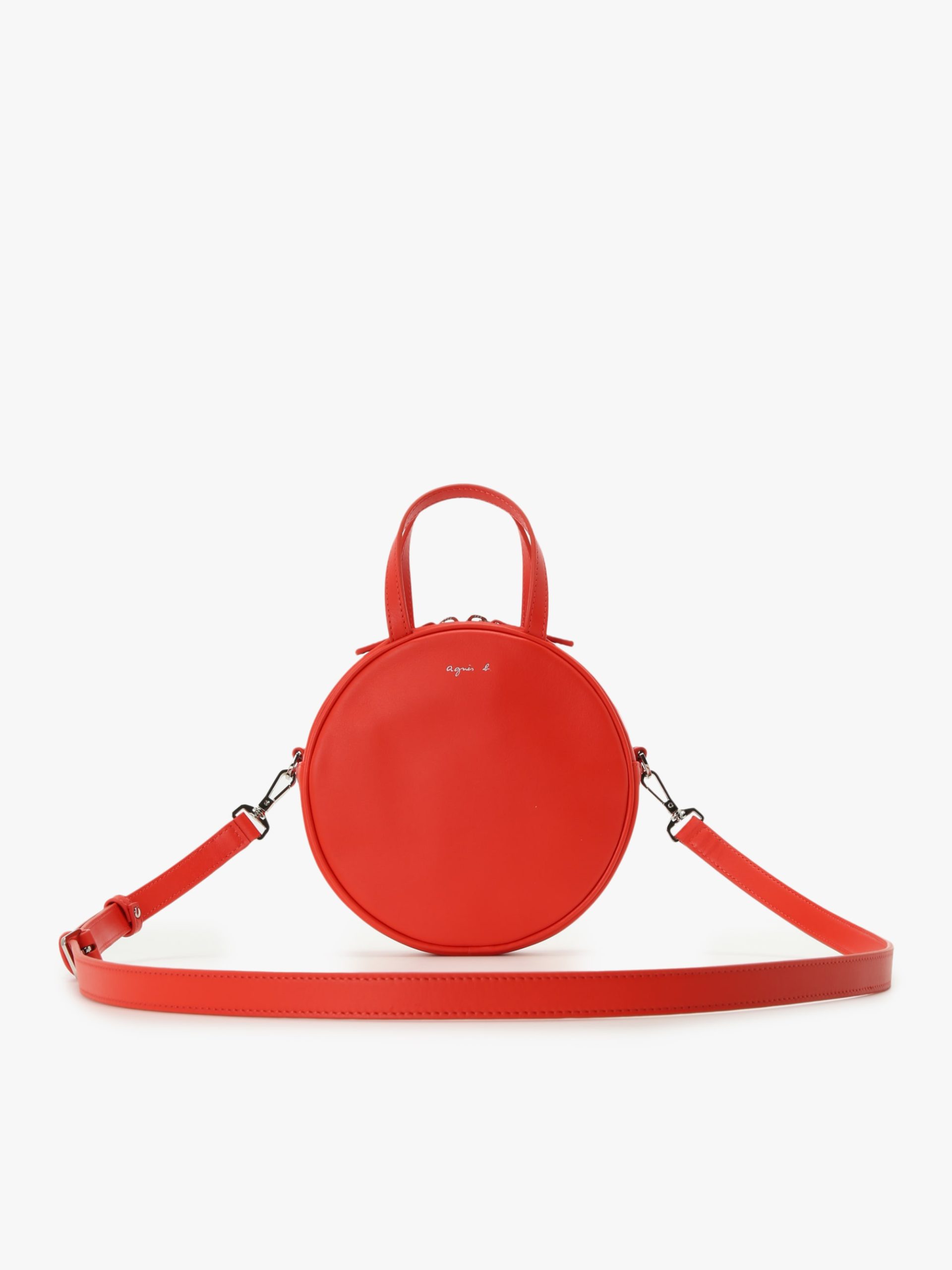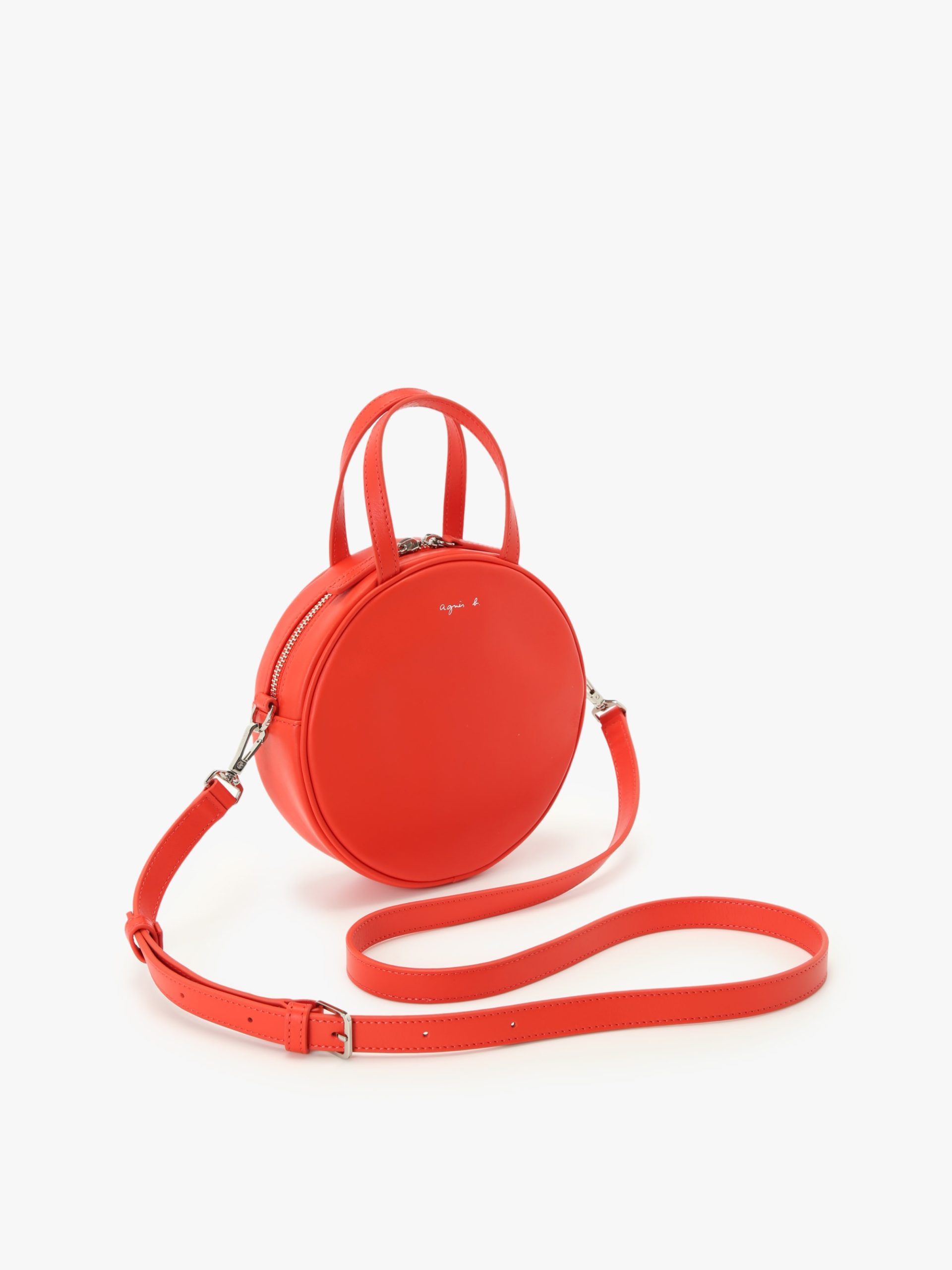 This handbag showcases a distinctive round shape that adds a unique touch to any outfit.Crafted for elegance, it includes a long shoulder strap for two carrying options. The glossy leather texture adds sophistication, making it a standout accessory.